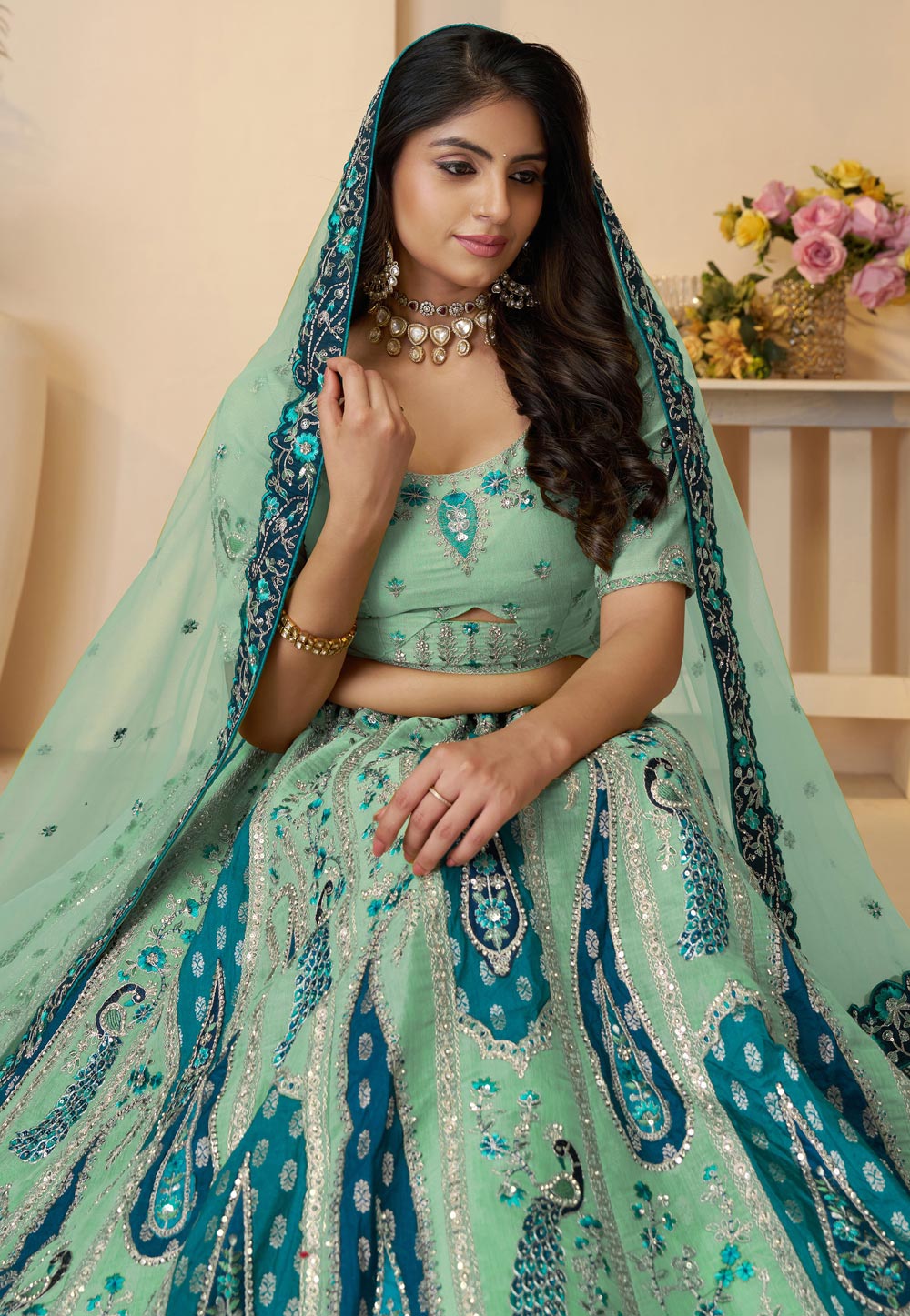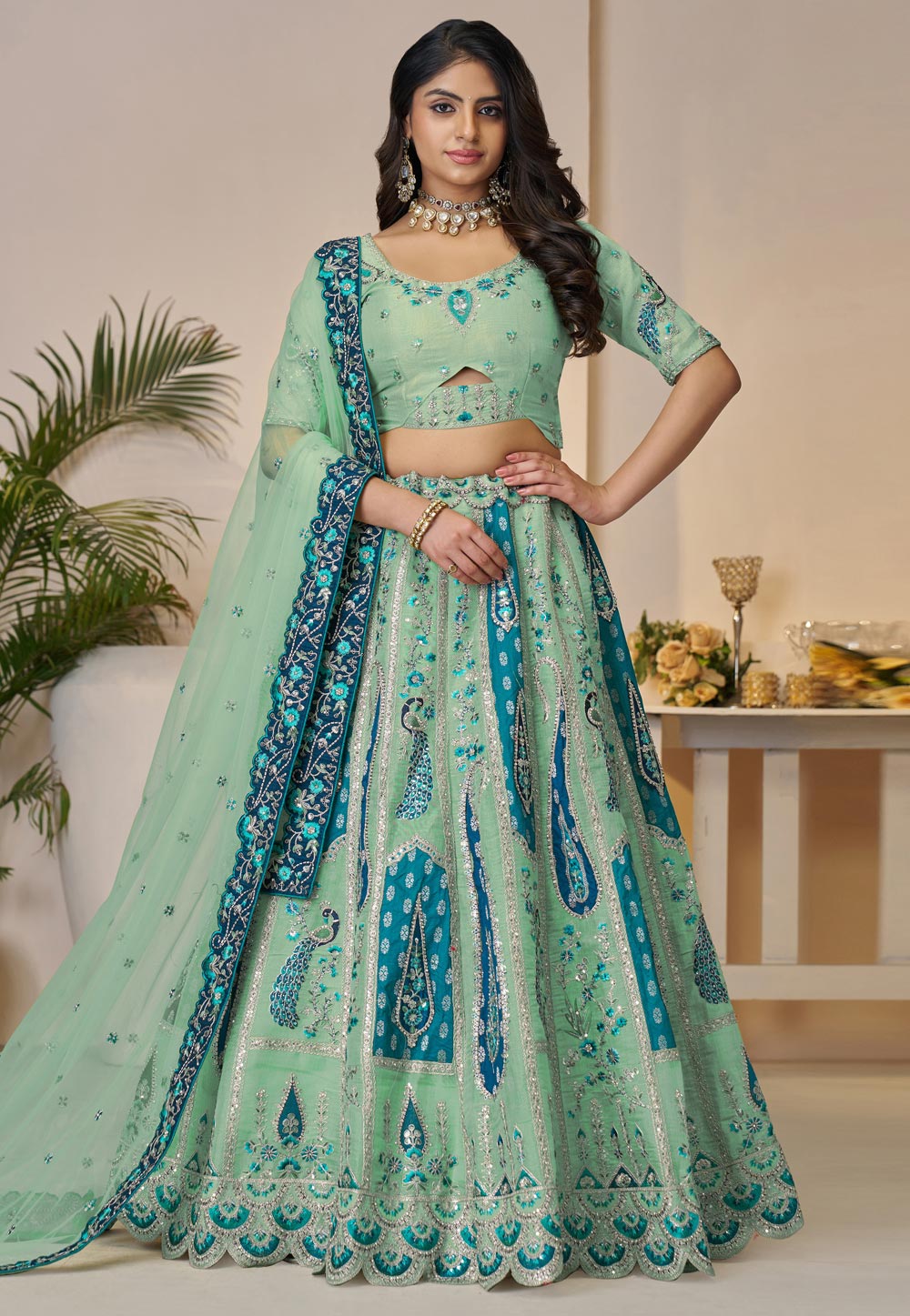 Sea Green Banarasi Silk Lehenga Choli