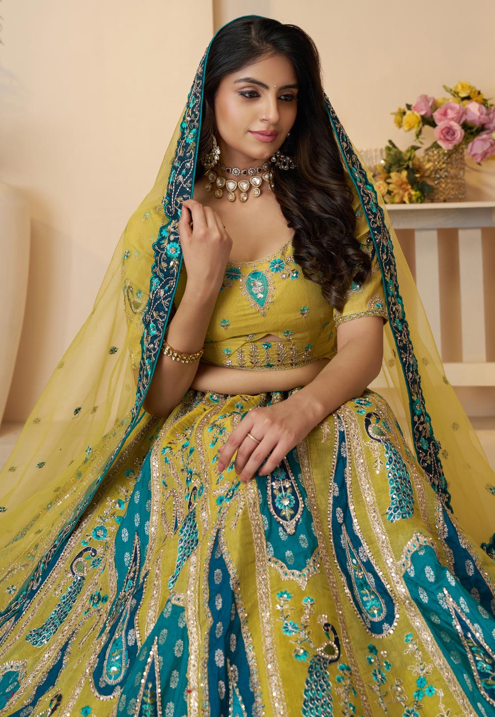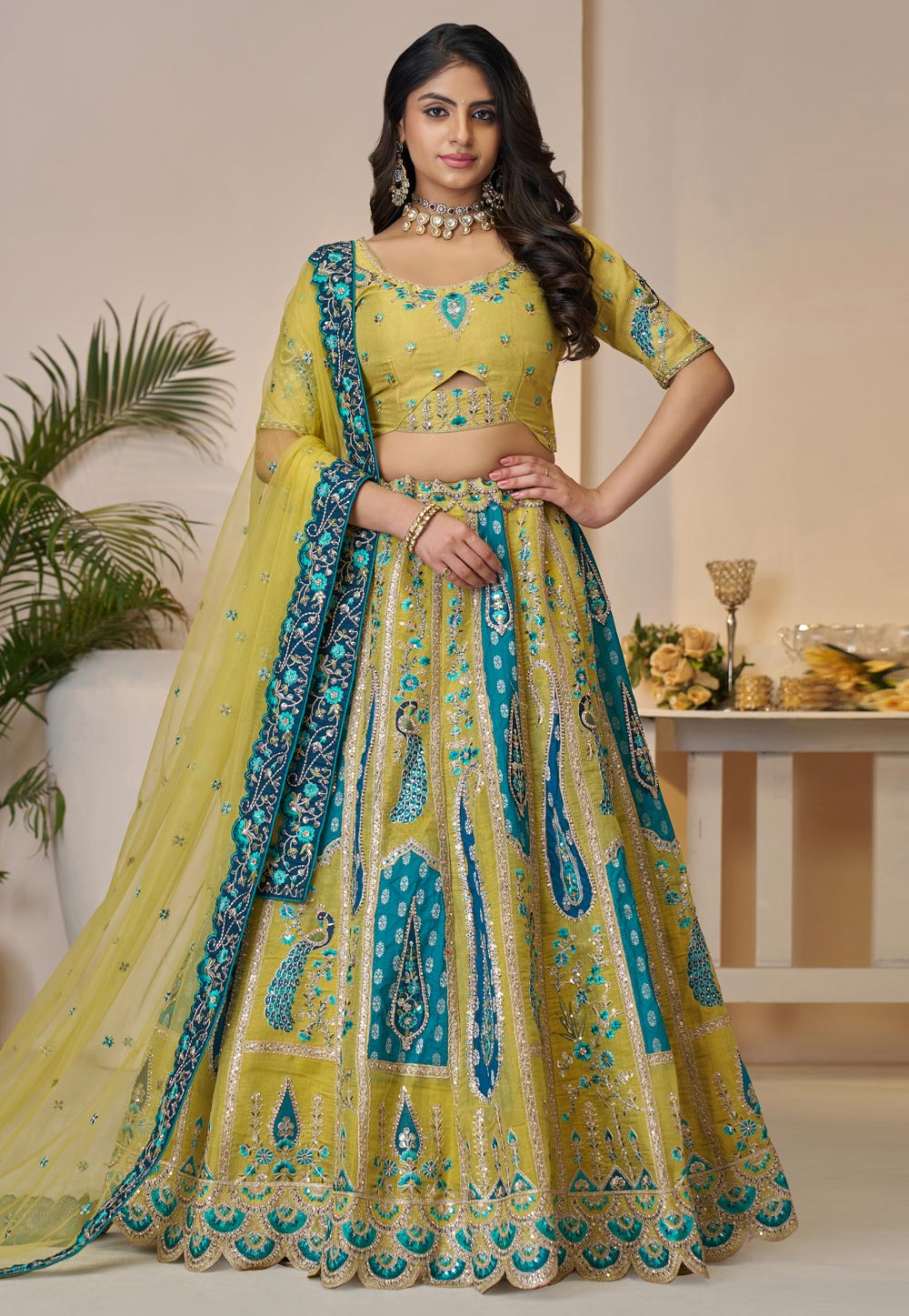 Yellow Banarasi Silk Wedding Lehenga Choli