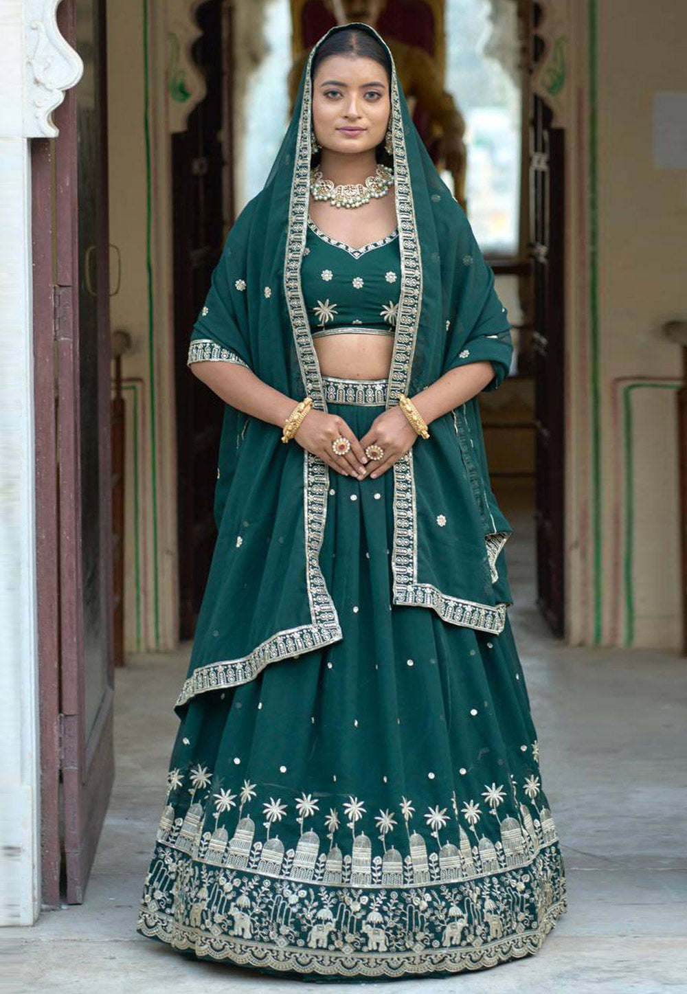 Green Georgette Lehenga Choli