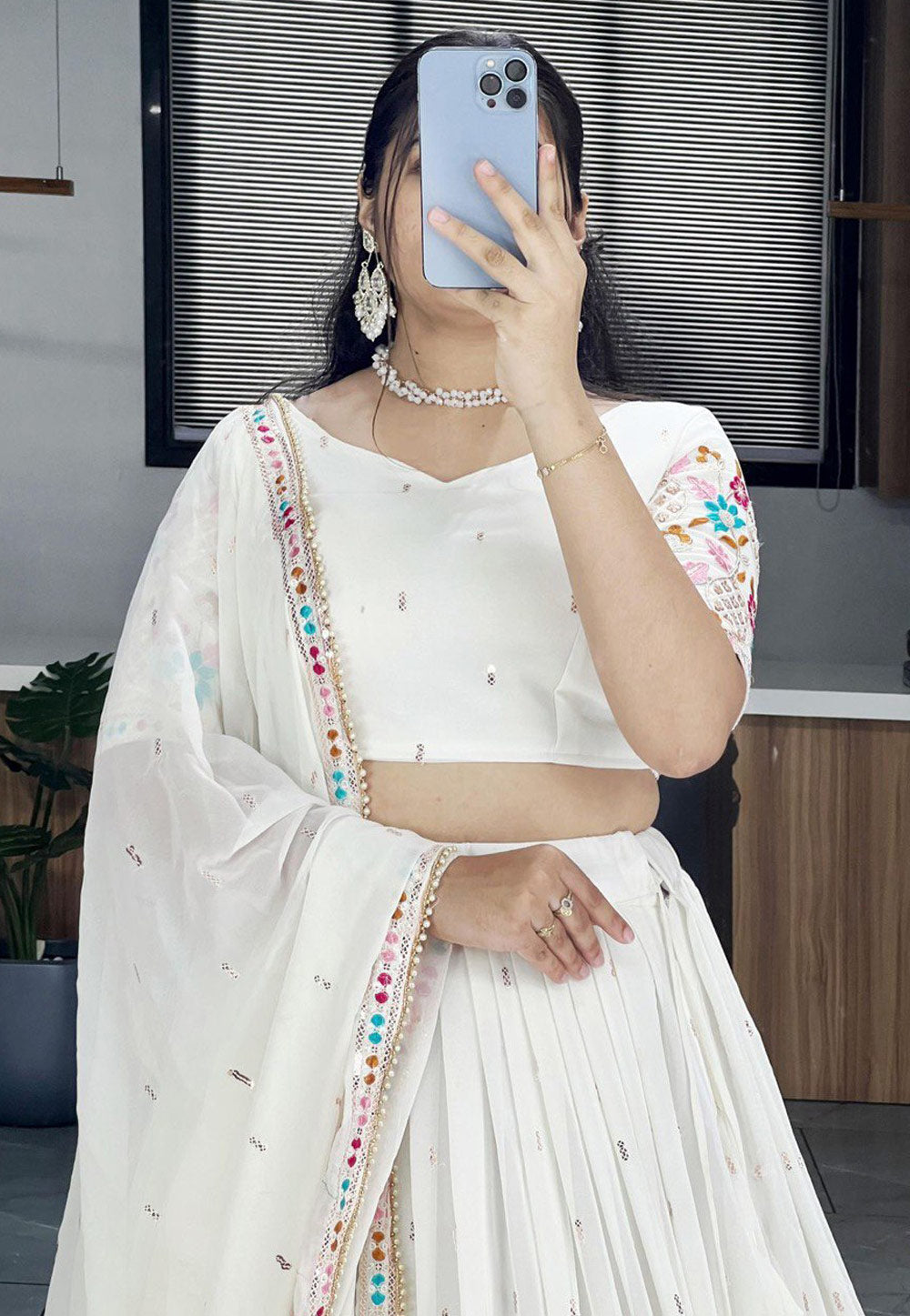 Off White Georgette Circular Lehenga Choli