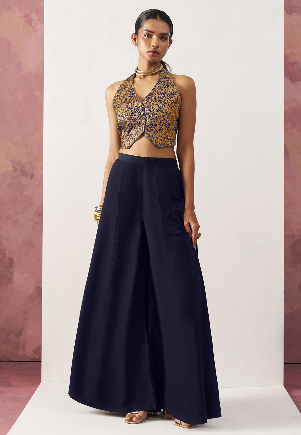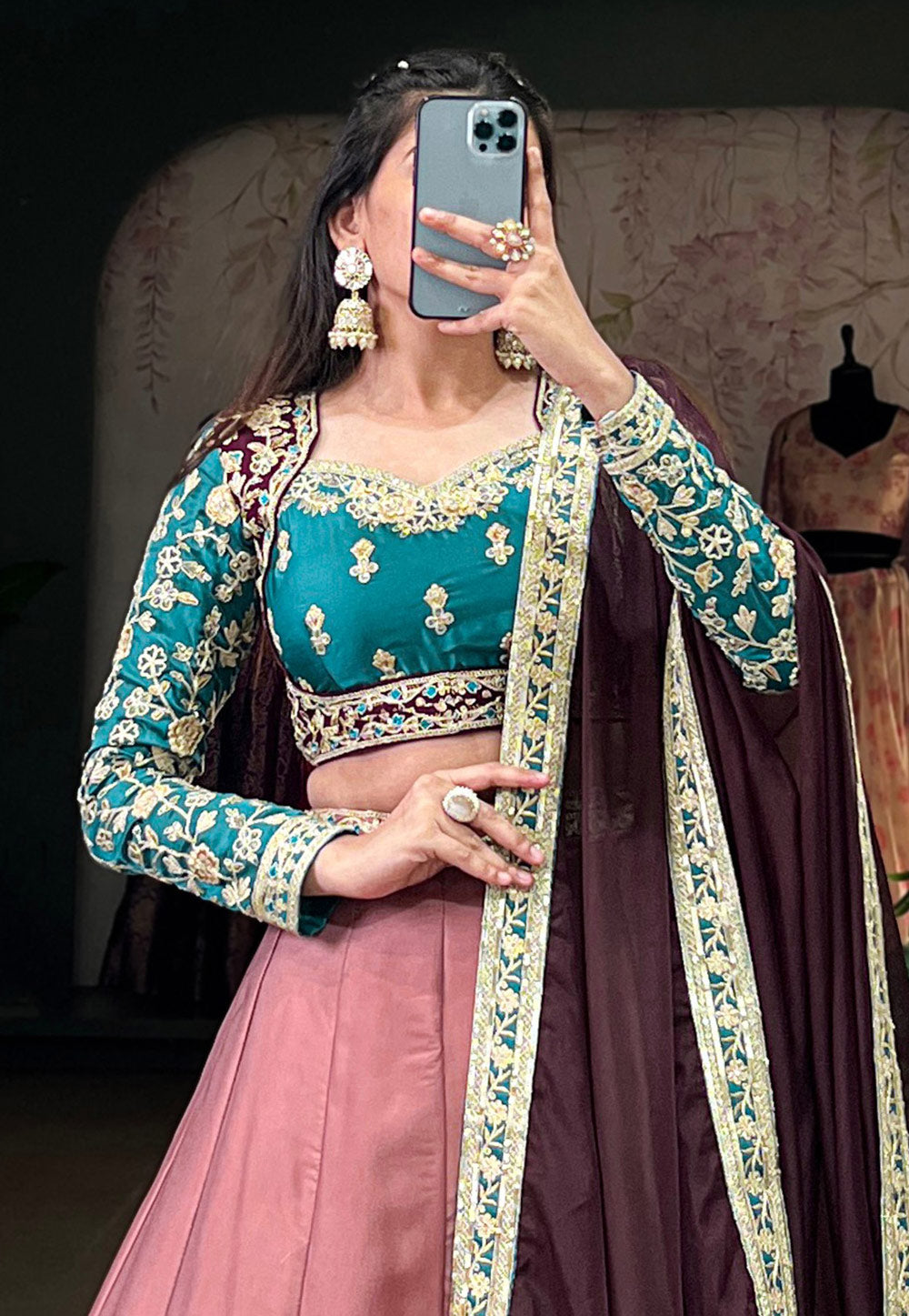 Navy Blue Crepe Readymade A Line Lehenga Choli