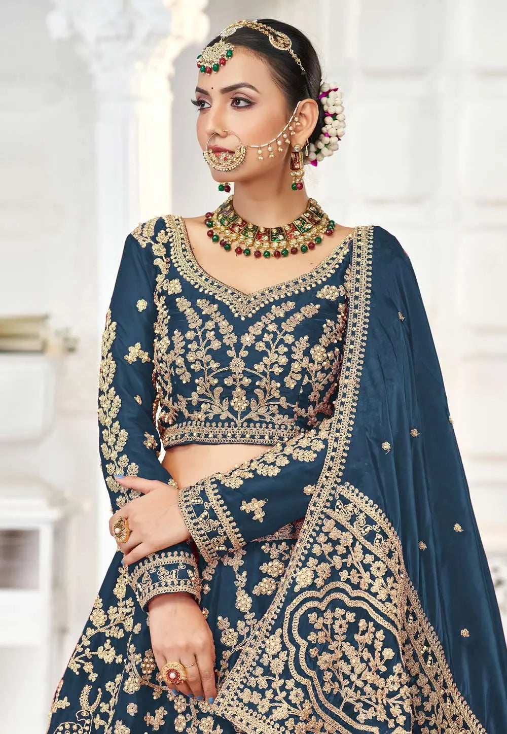 Navy Blue Faux Georgette Readymade Lehenga Choli