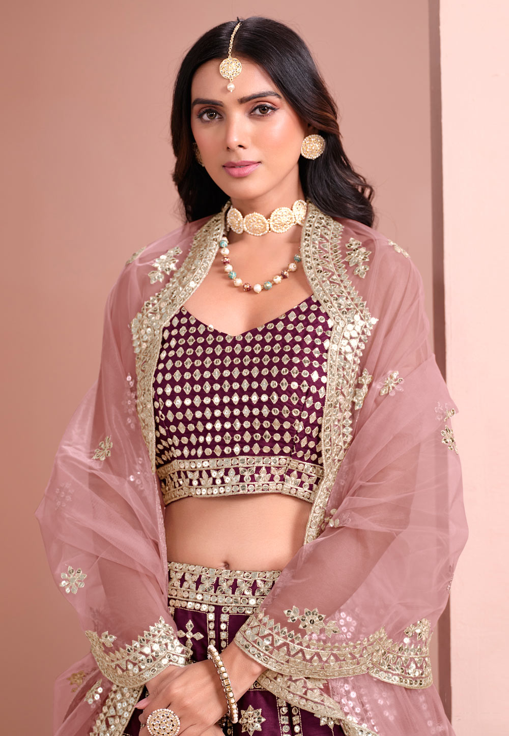 Red Faux Georgette Readymade Circular Lehenga Choli