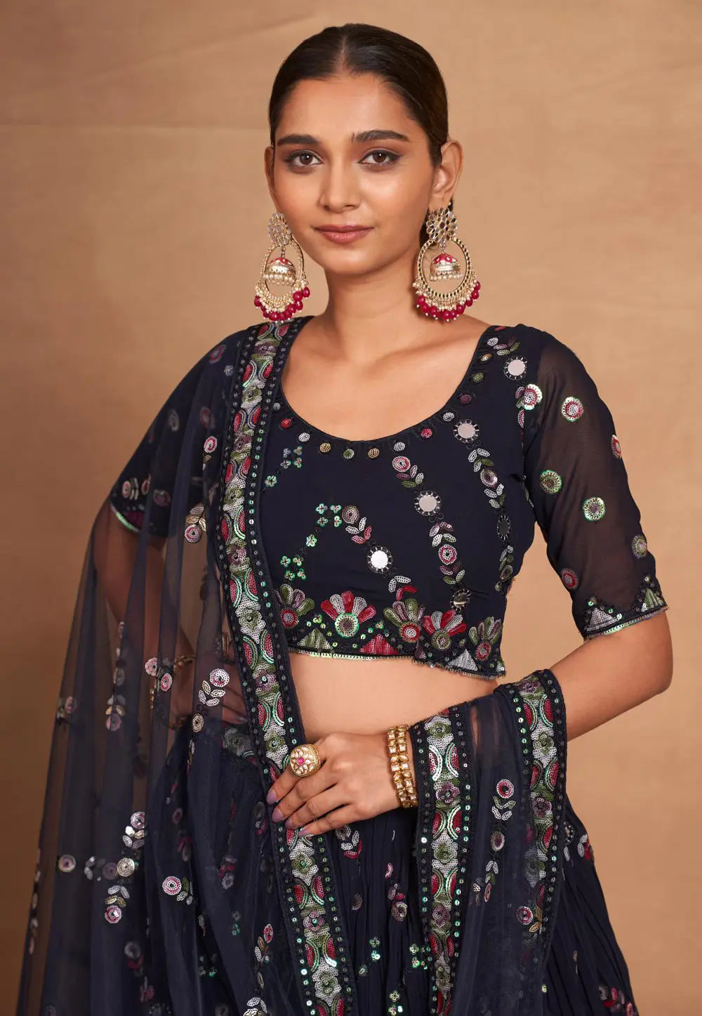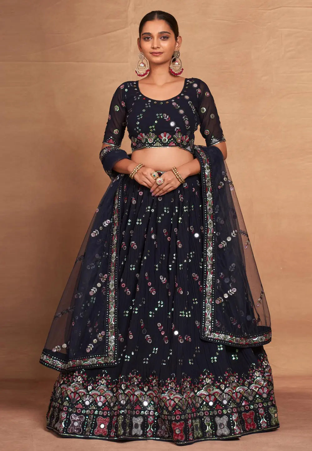 Navy Blue Tussar Silk Circular Lehenga Choli