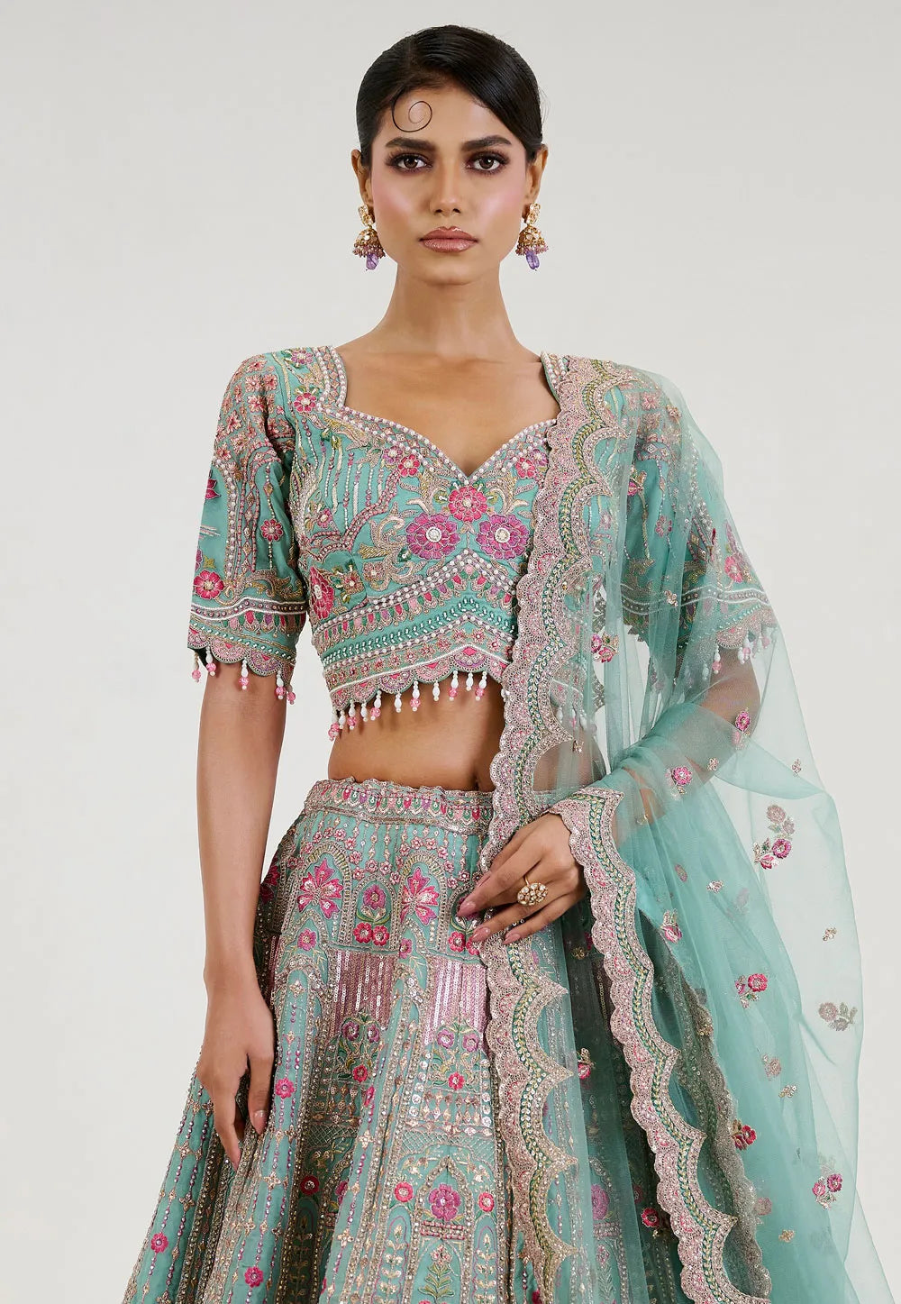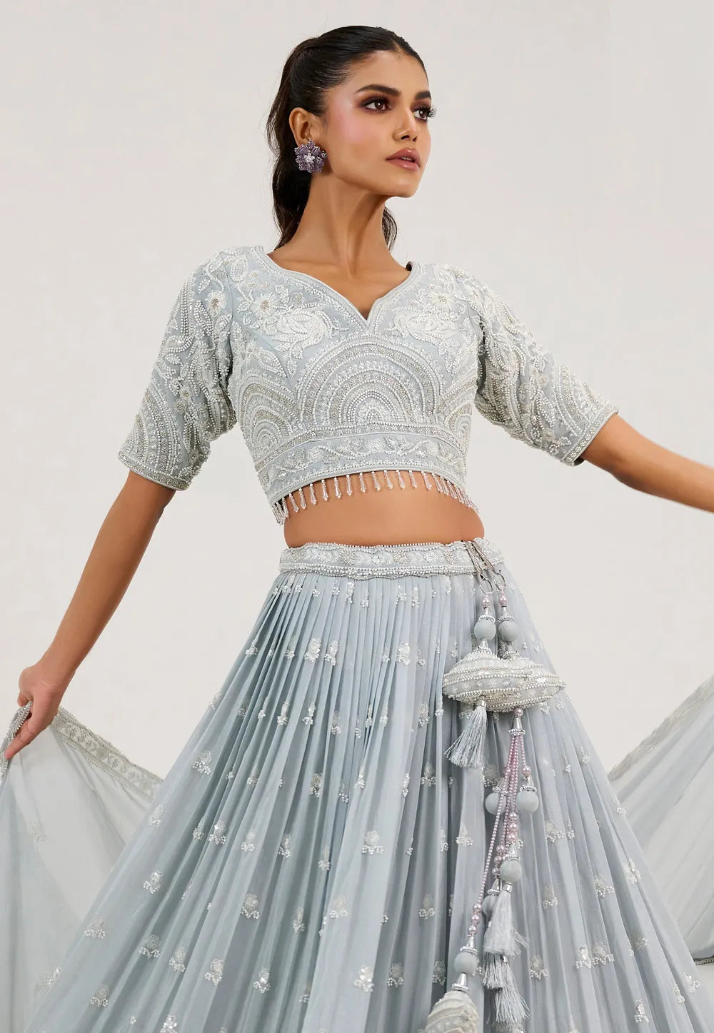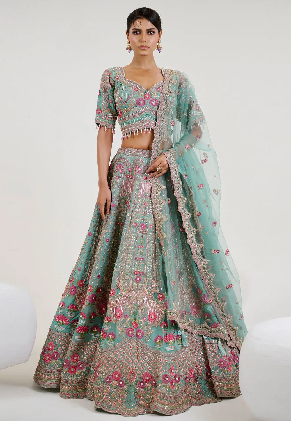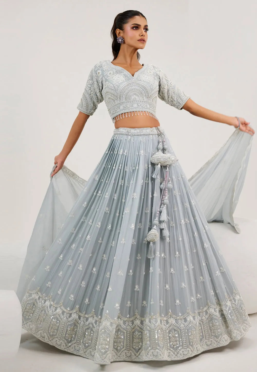Sky Blue Jacquard Silk Circular Lehenga Choli