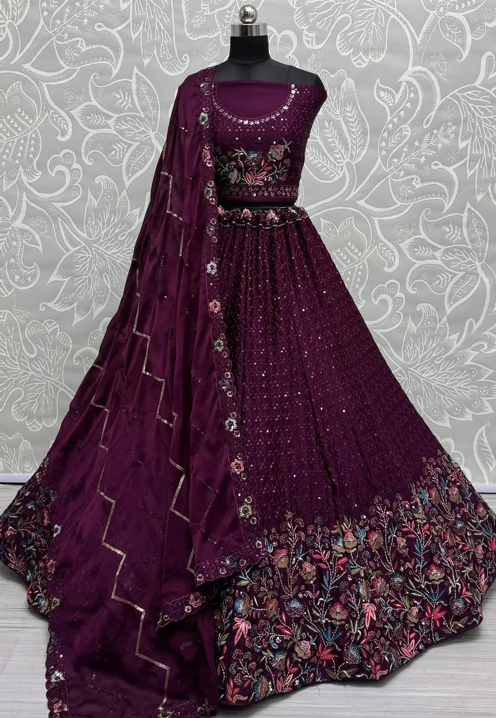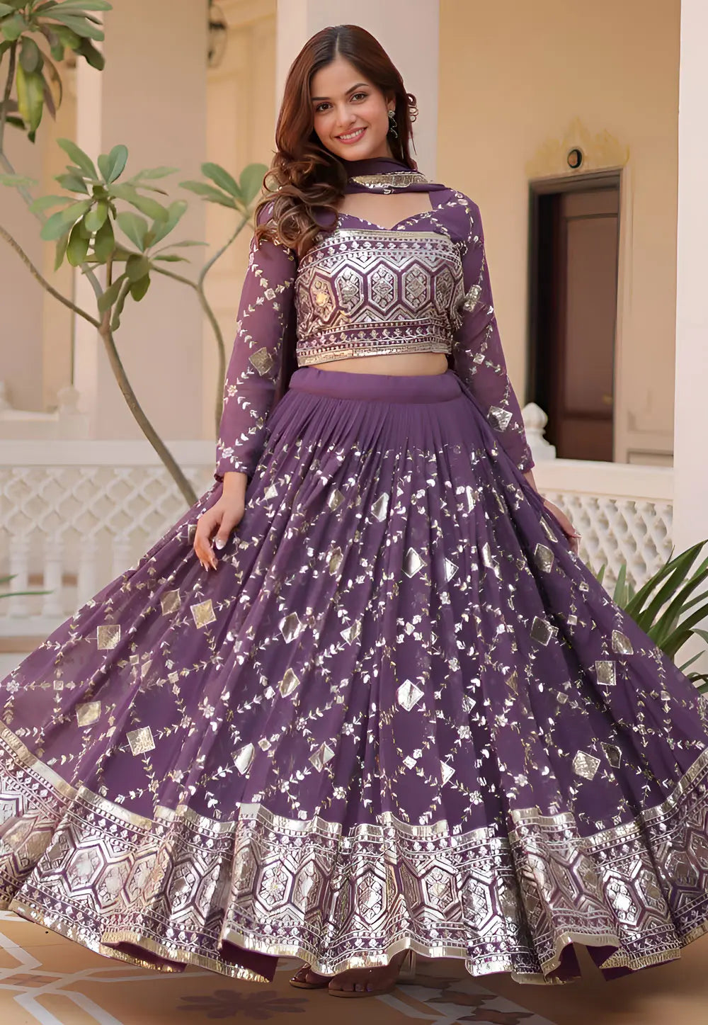 Purple Chinon Lehenga Choli