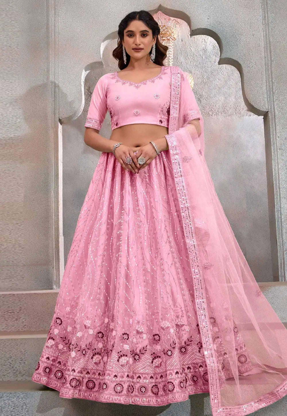 Pink Jacquard Silk Readymade Circular Lehenga Choli
