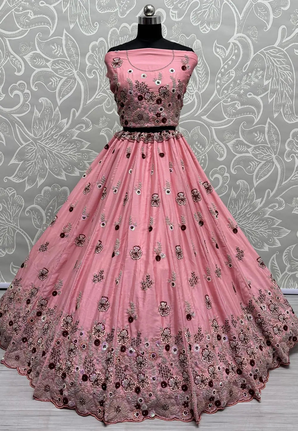 Pink Chinon Indo Western Lehenga Choli