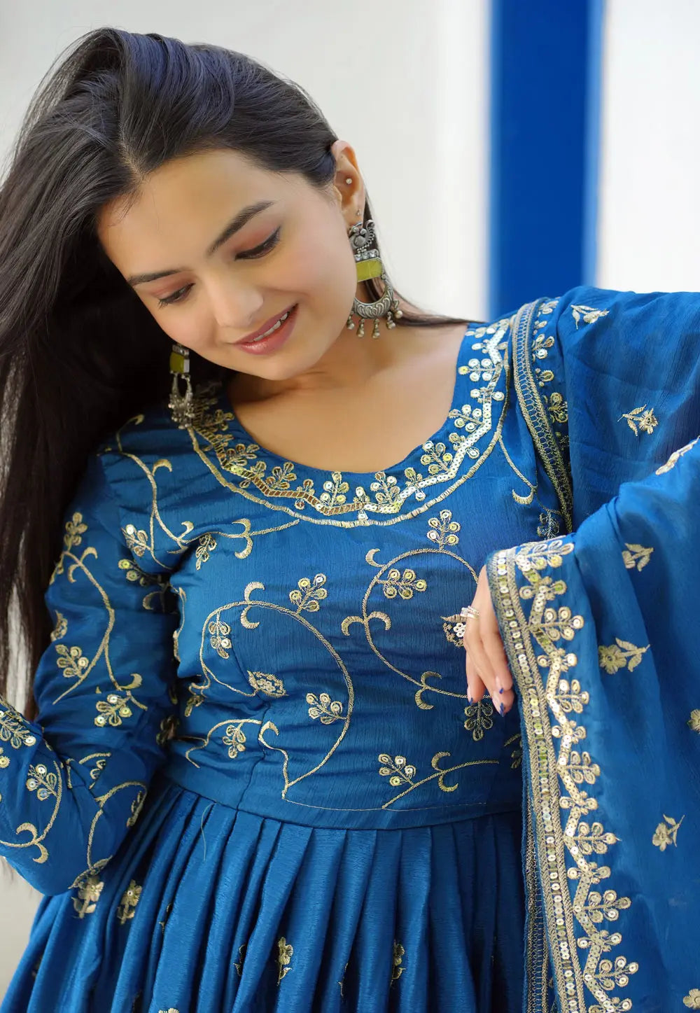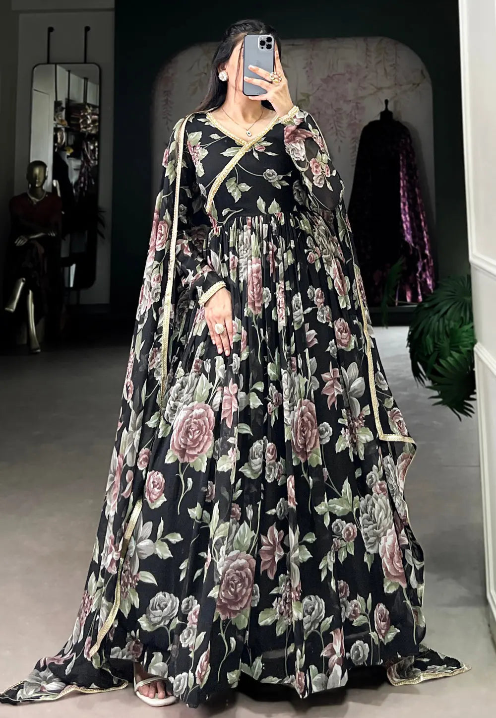 Brown Faux Georgette Readymade Long Anarkali Suit