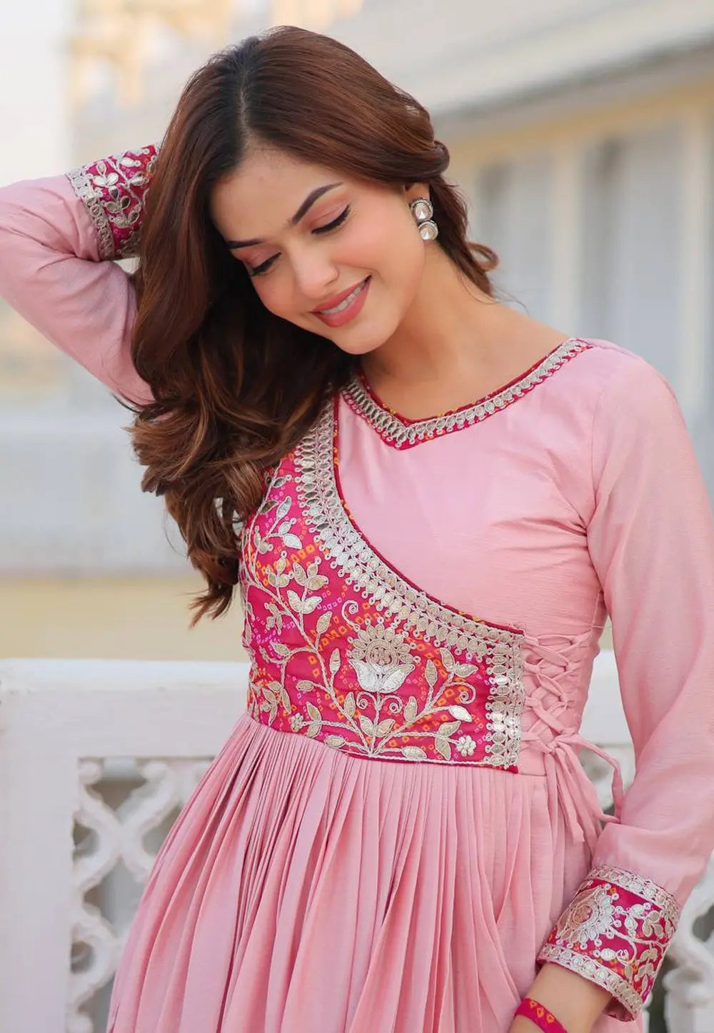 Magenta Faux Georgette Embroidered Anarkali Suit