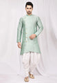 Pista Green Art Silk Indo Western Suit