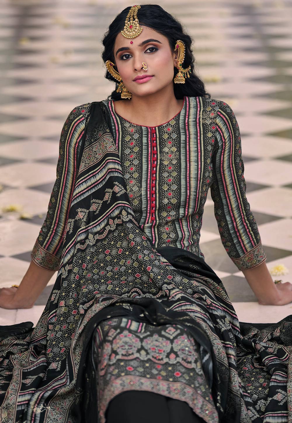 Sky Blue Chinon Silk Readymade Gharara Suit