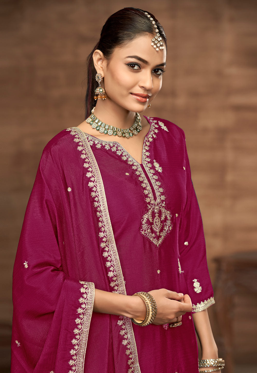 Magenta Chinon Silk Pakistani Palazzo Suit