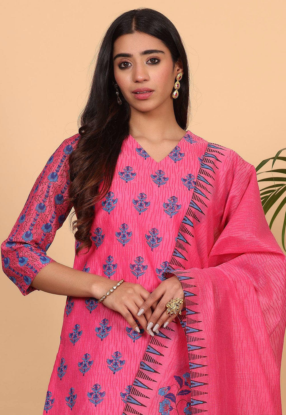 Pink Chanderi Readymade Pakistani Suit