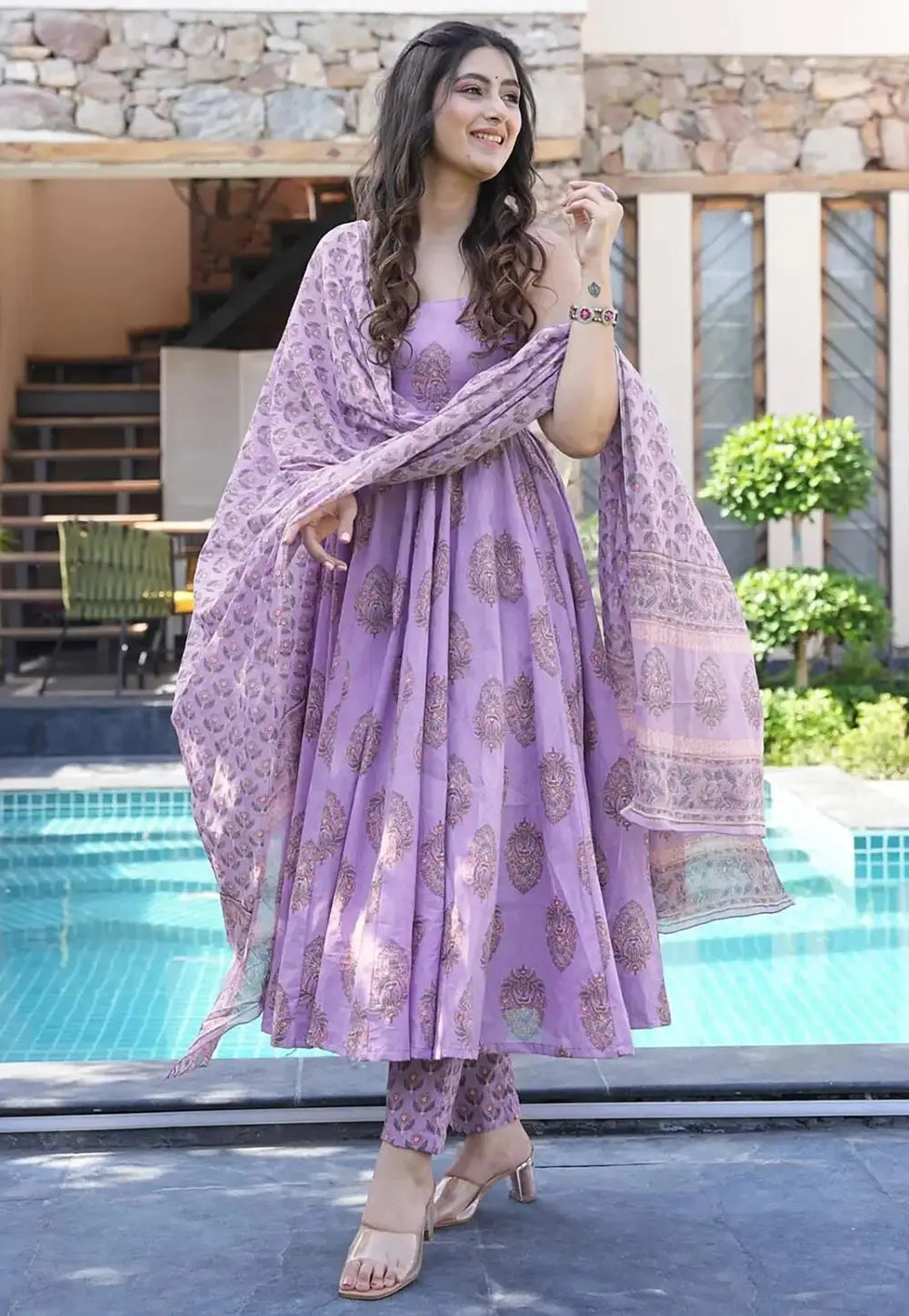 Lavender Chanderi Silk Readymade Pant Style Suit
