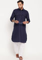 Load image into Gallery viewer, Navy Blue Cotton Pathani Suit