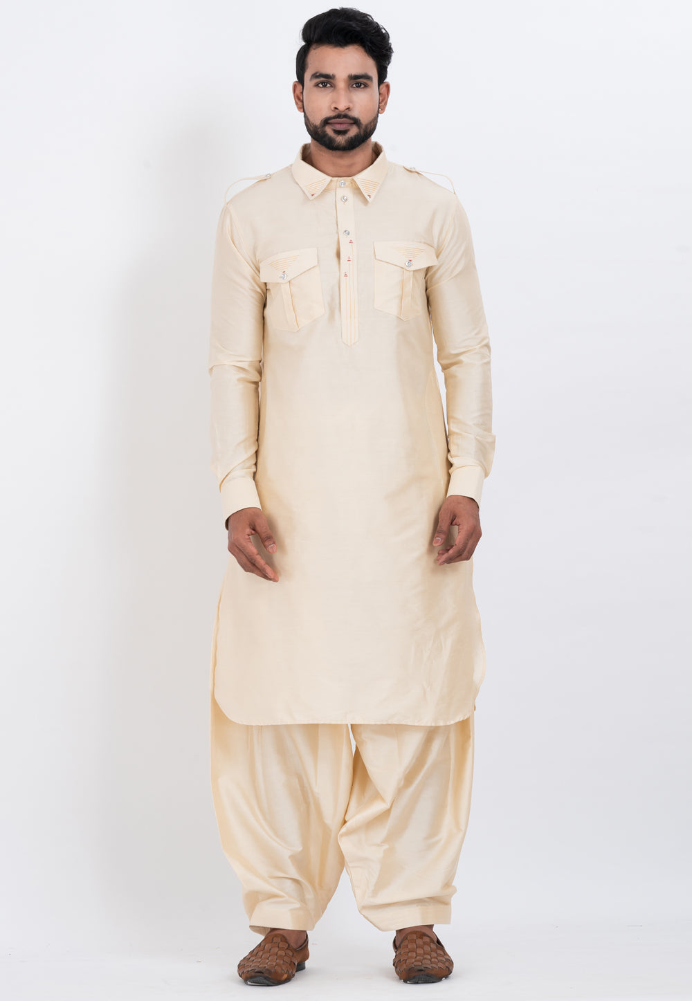 Cream Viscose Pathani Suit