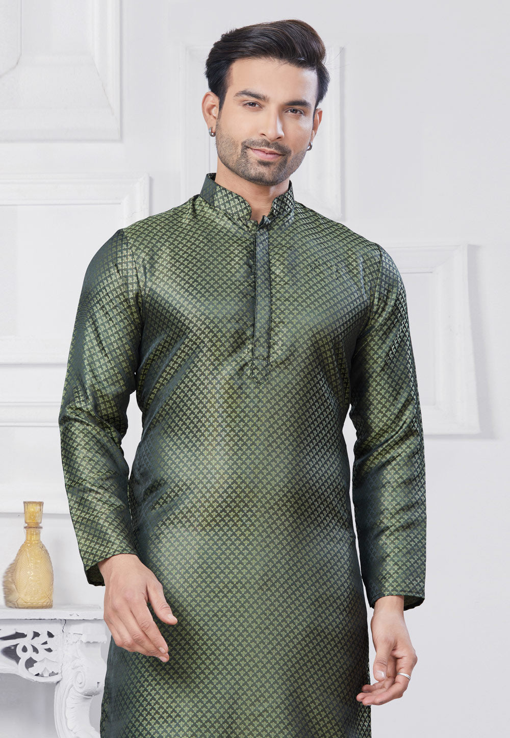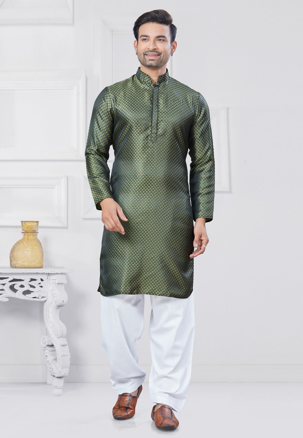 Green Jacquard Silk Pathani Suit