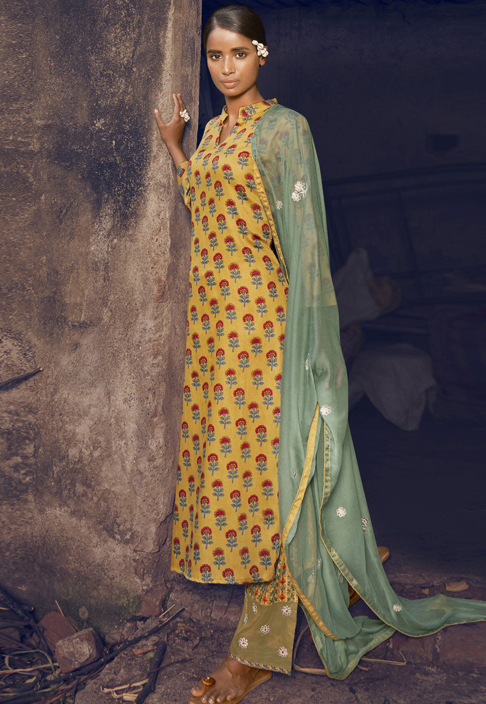 Yellow Silk Readymade Pakistani Suit