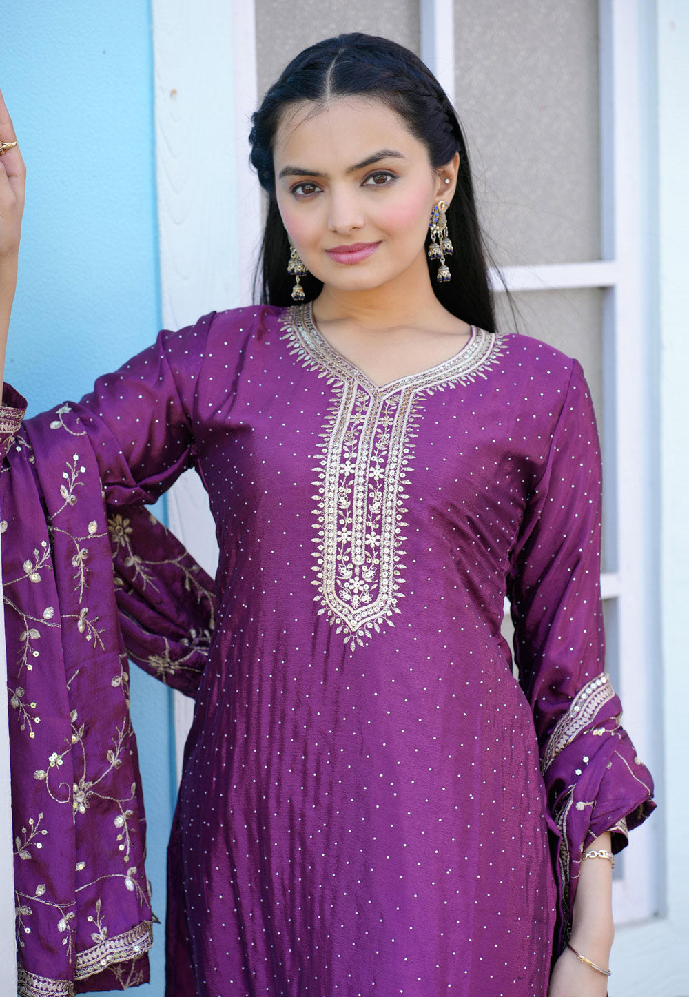Mehndi Chinon Silk Readymade Pant Style Suit