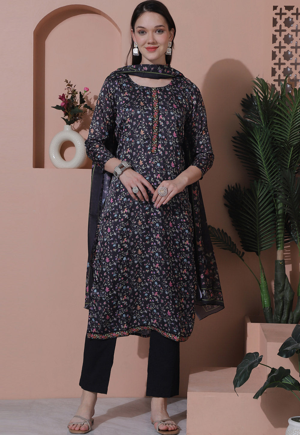 Black Satin Pakistani Suit
