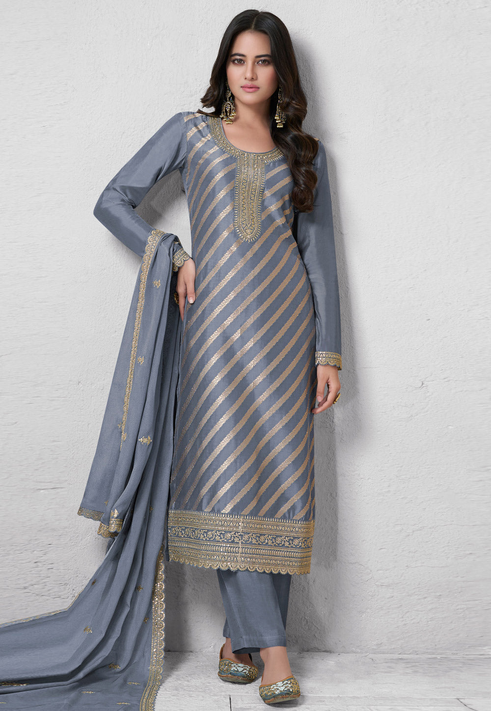 Grey Silk Pant Style Suit