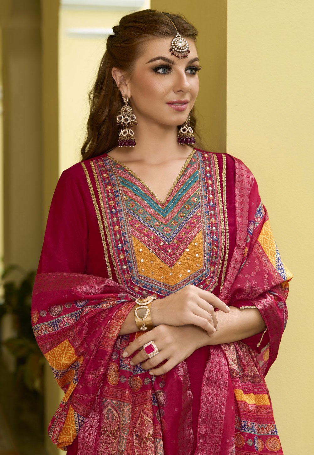 Maroon Silk Readymade Pakistani Suit