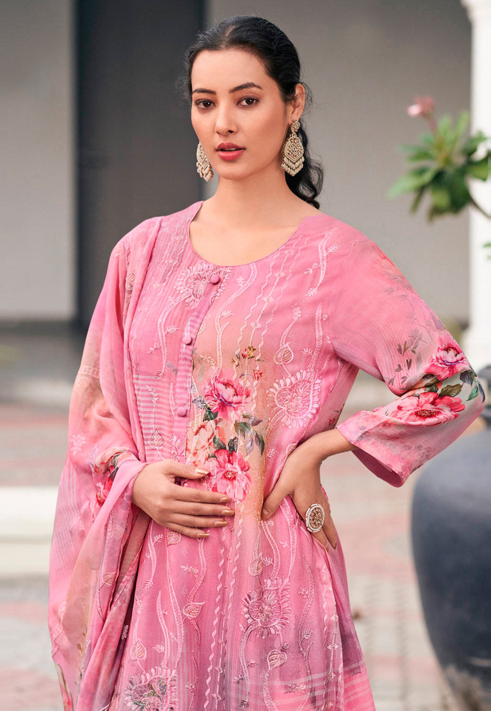 Pink Georgette Pant Style Suit