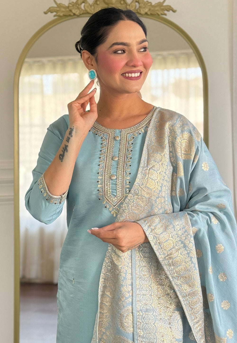 Sky Blue Viscose Readymade Pakistani Suit