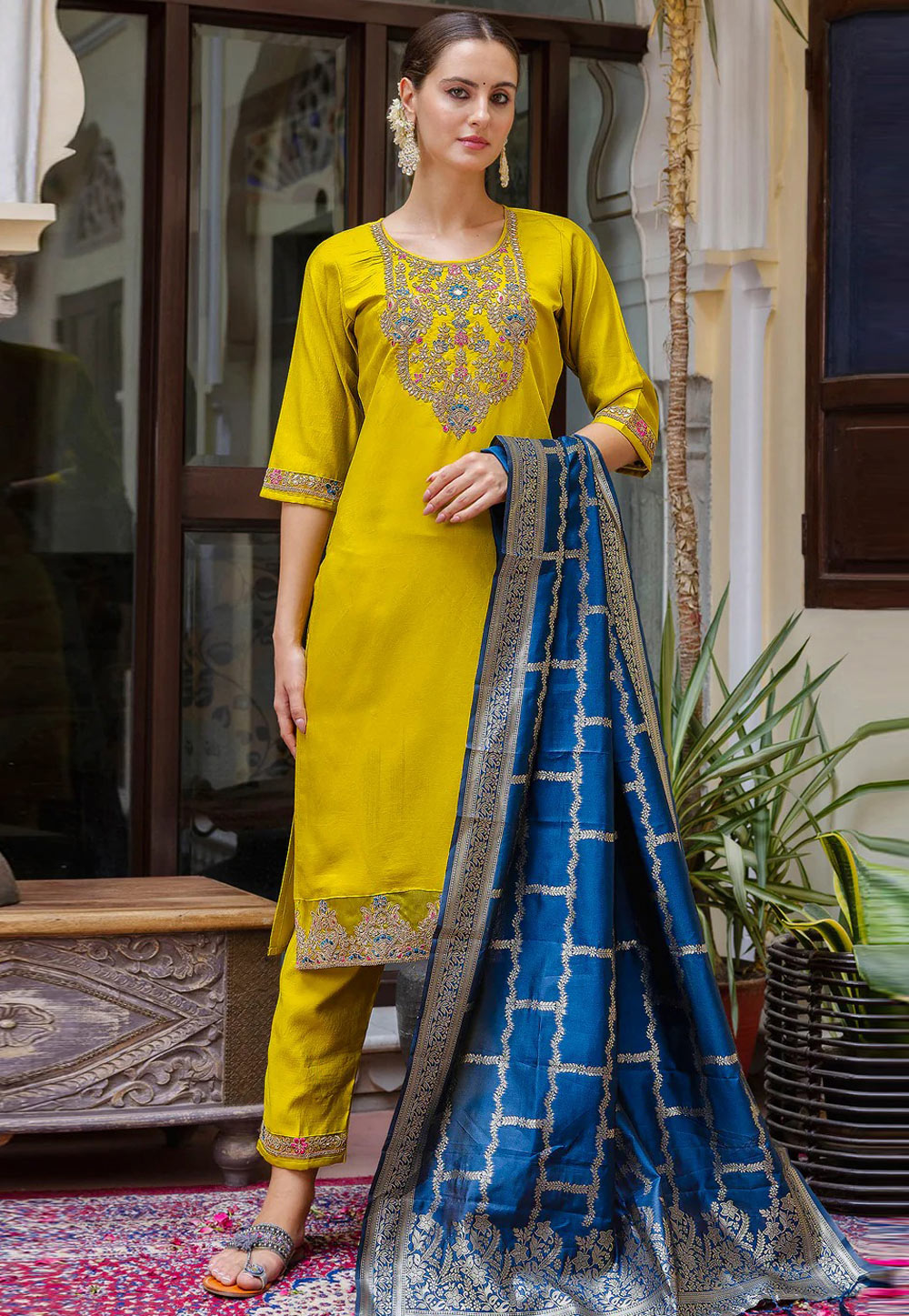 Mustard Viscose Rayon Readymade Pakistani Suit
