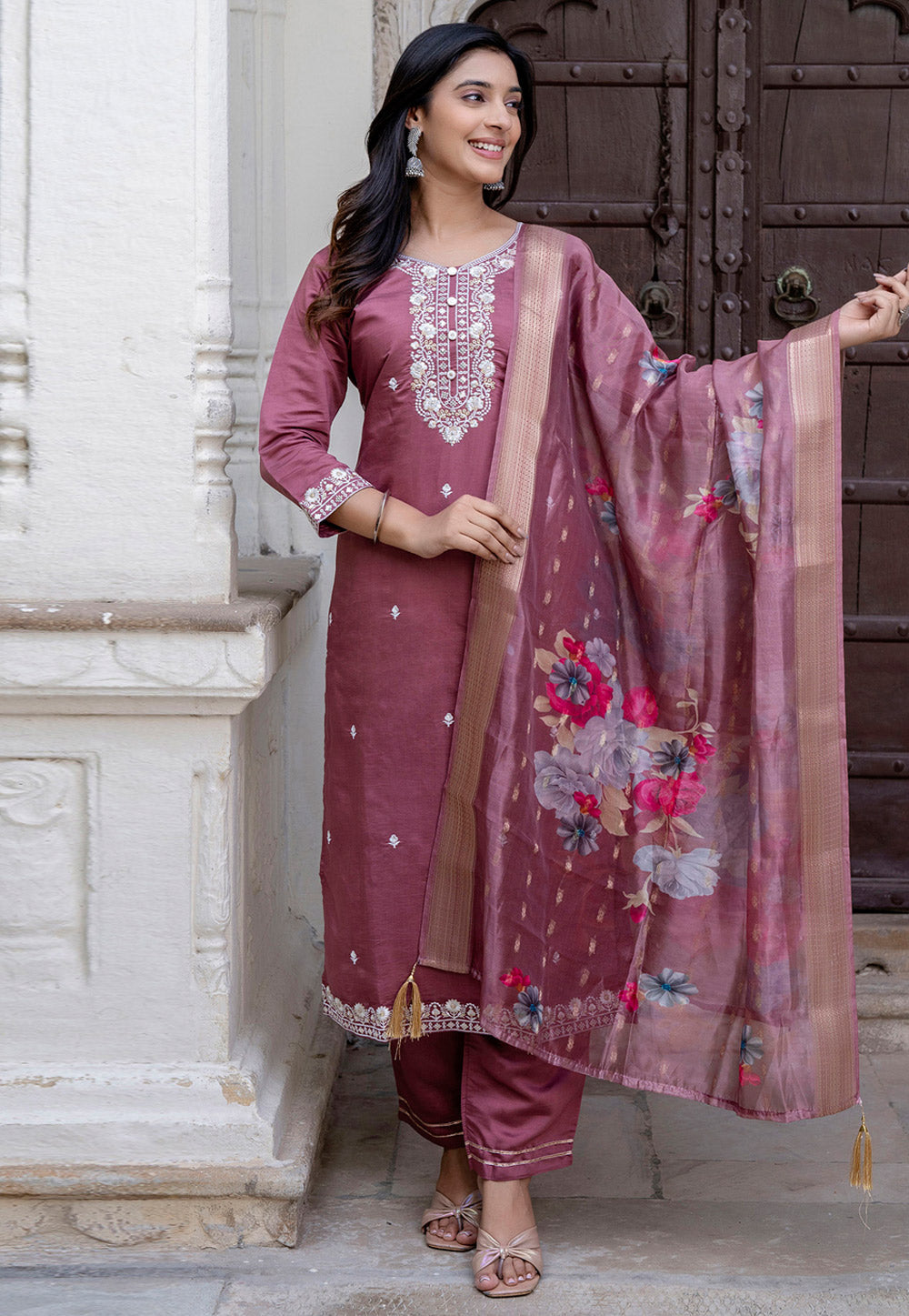 Pink Viscose Readymade Pakistani Suit