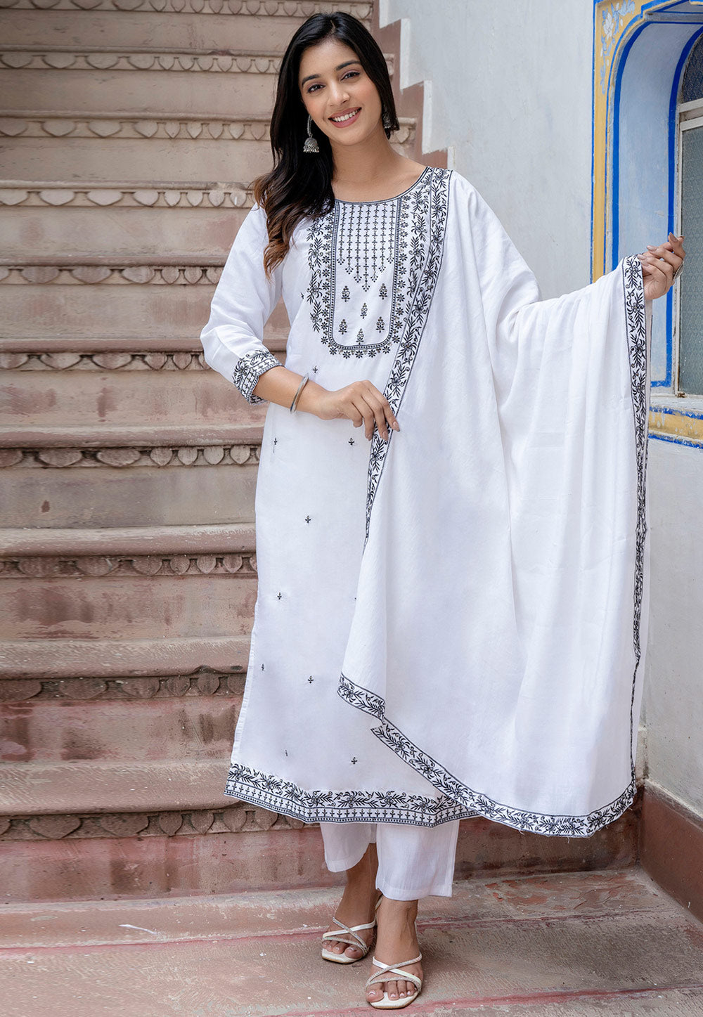 White Viscose Readymade Pant Style Suit