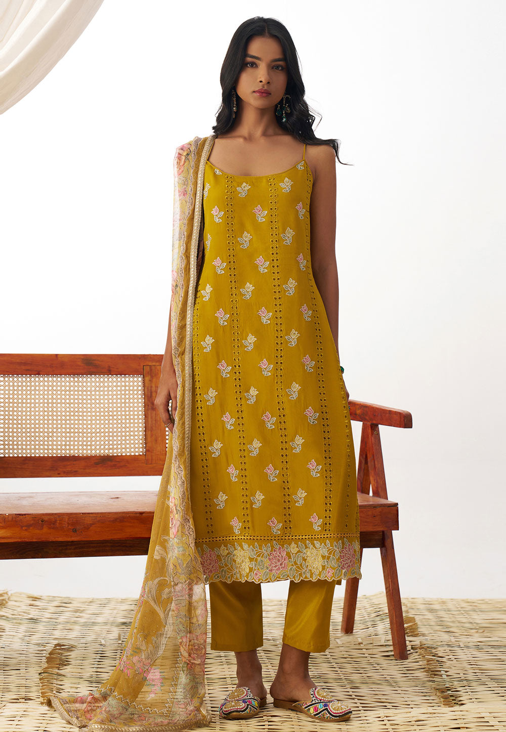 Mustard Organza Readymade Pant Style Suit