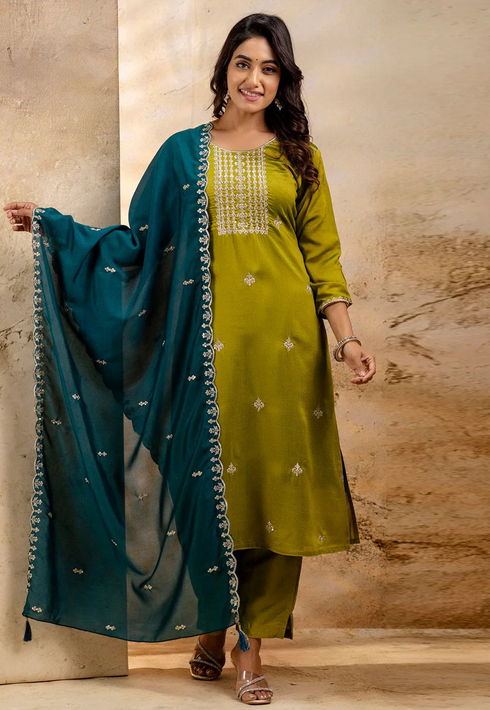 Mehndi Silk Readymade Pant Style Suit