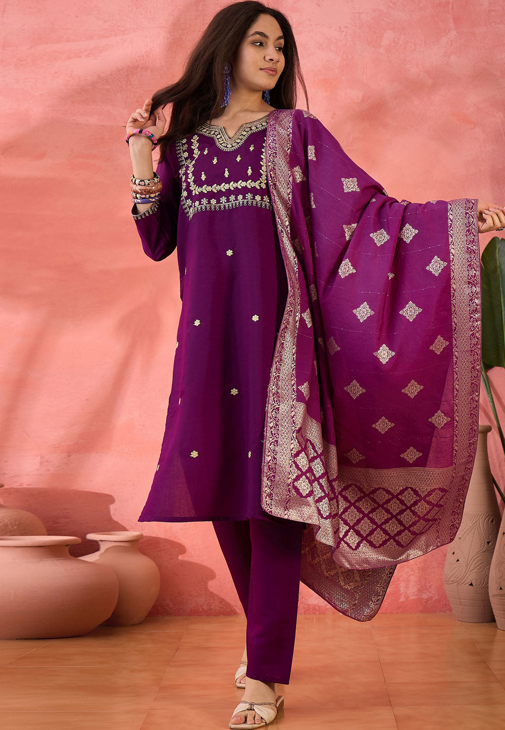 Wine Silk Readymade Pakistani Suit