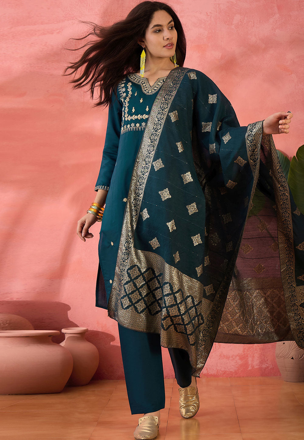 Teal Silk Readymade Pakistani Suit