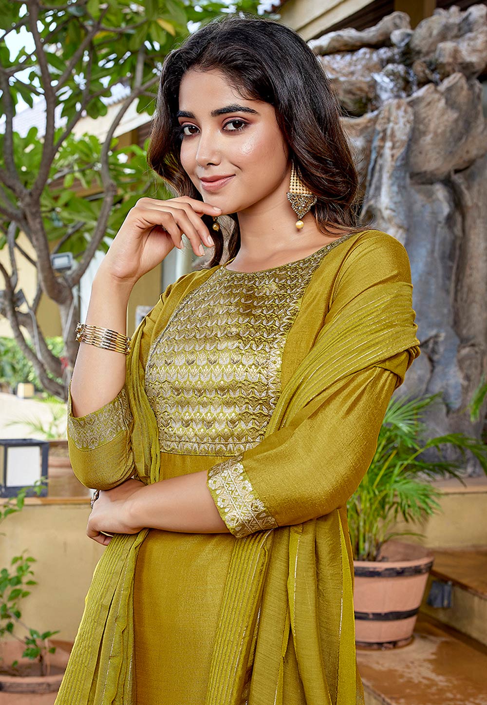 Mustard Silk Readymade Pakistani Suit