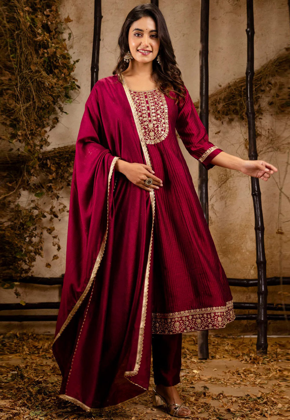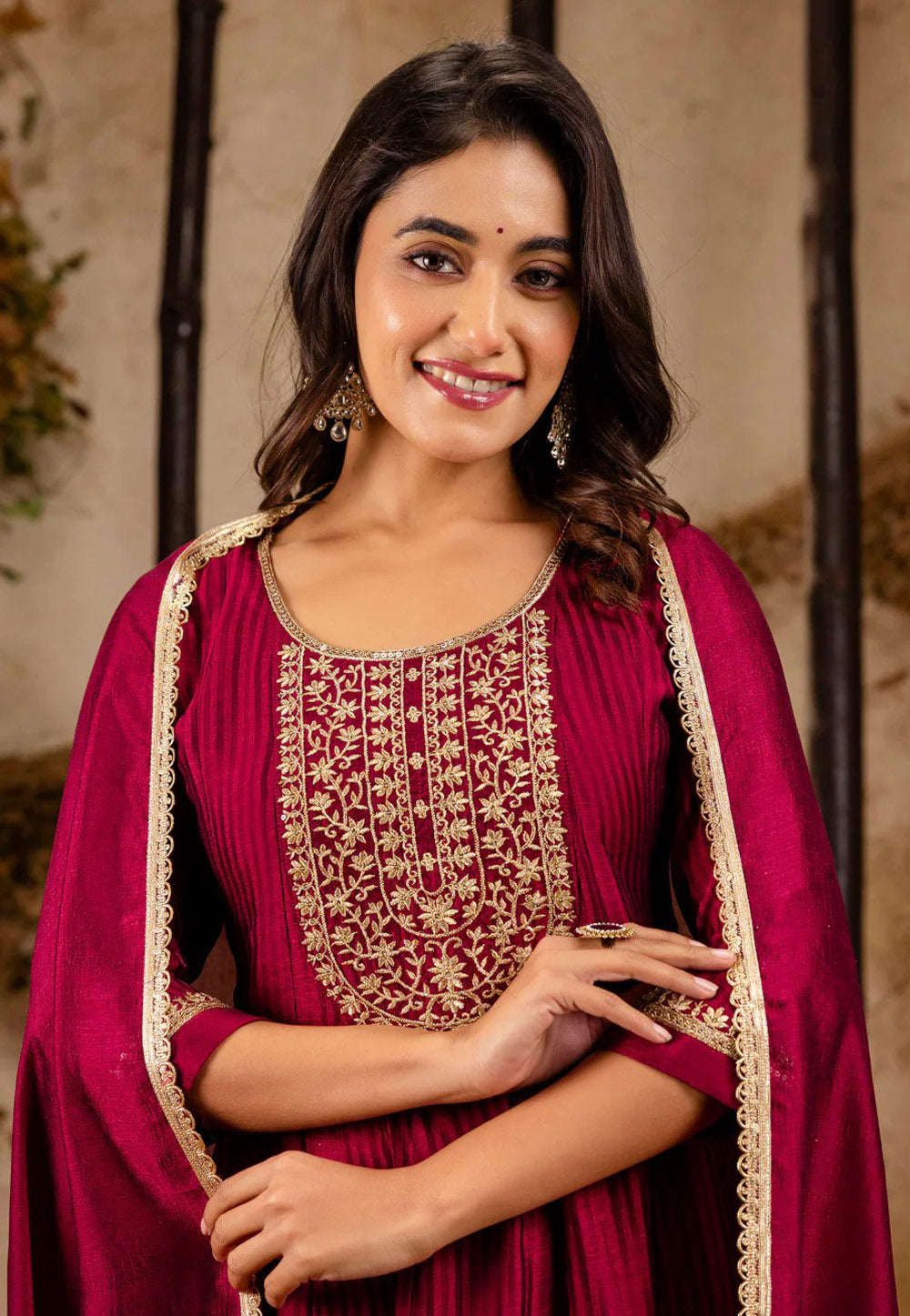 Sky Blue Chanderi Silk Readymade Pant Style Suit
