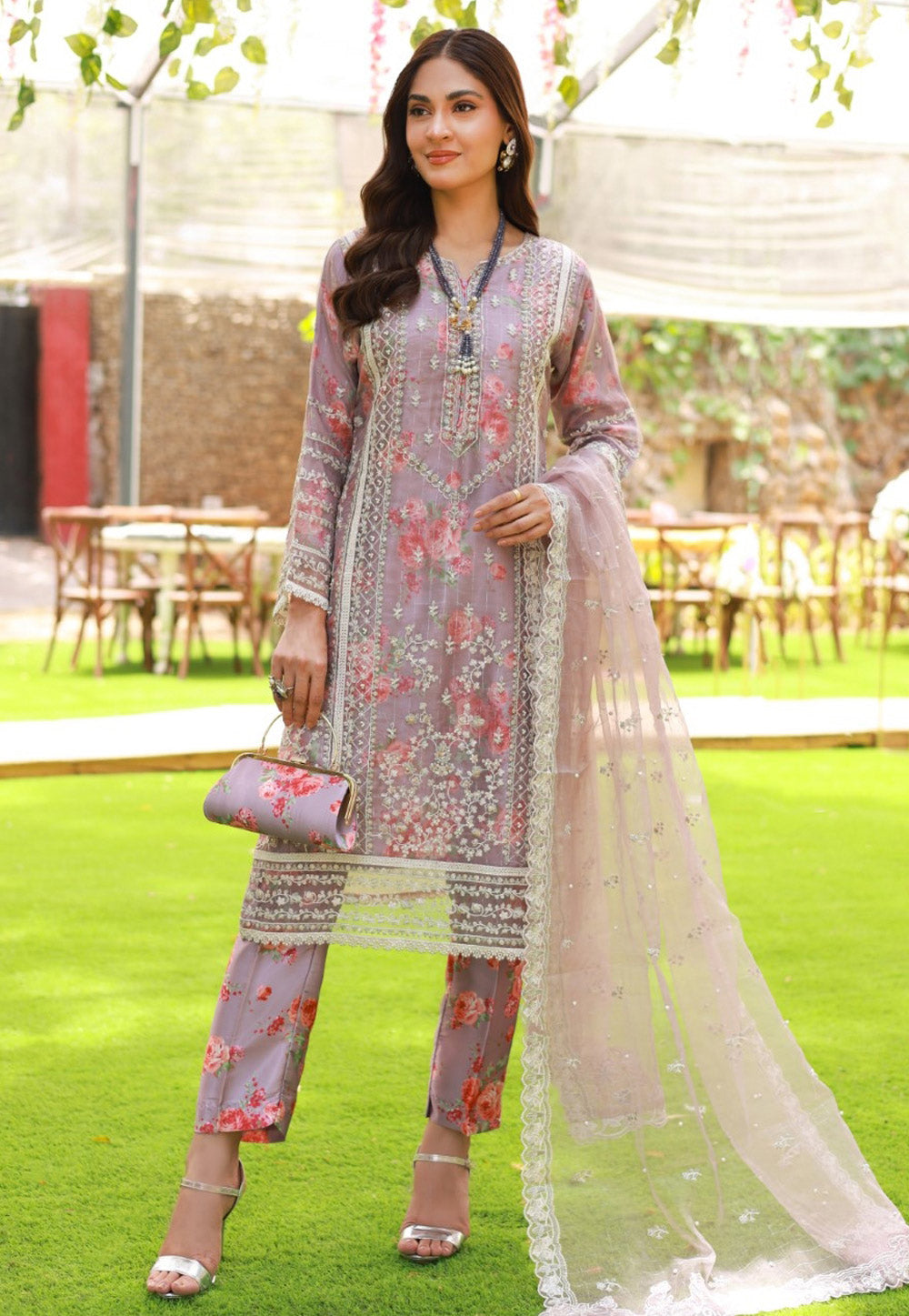 Lavender Organza Pant Style Suit
