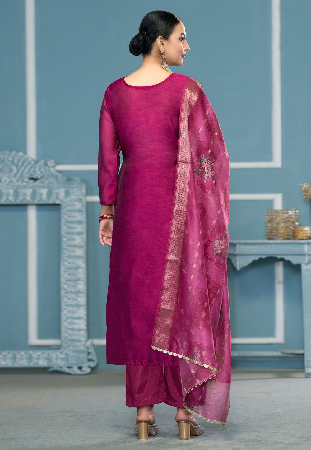 Magenta Banarasi Pant Style Suit