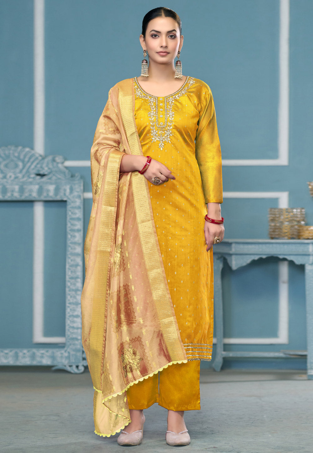 Yellow Banarasi Pant Style Suit