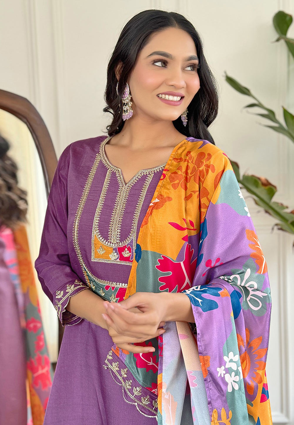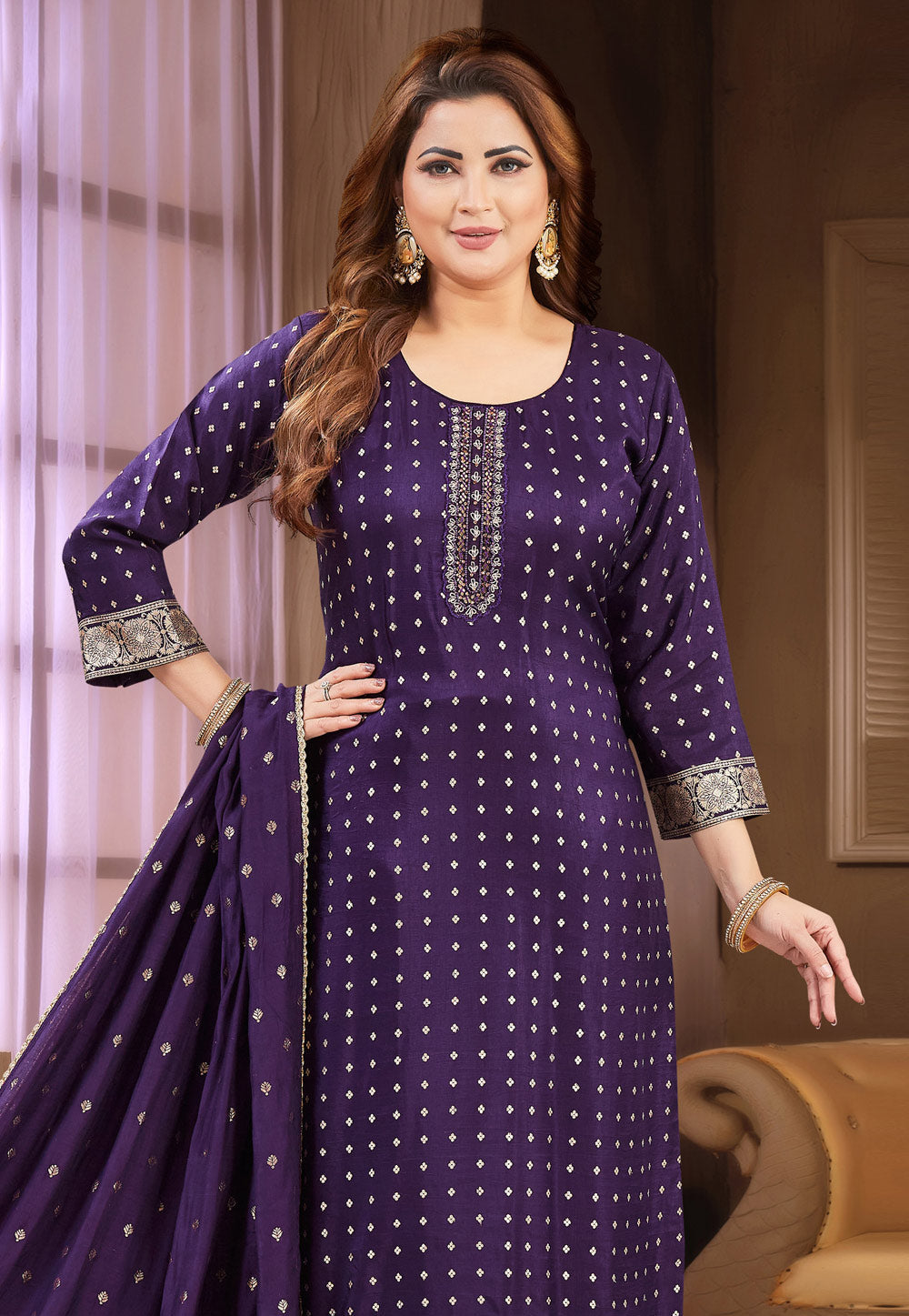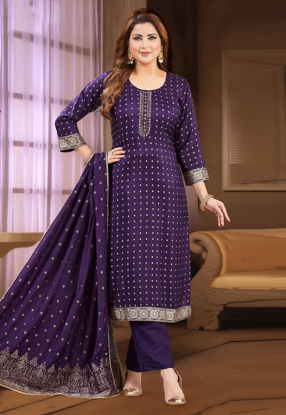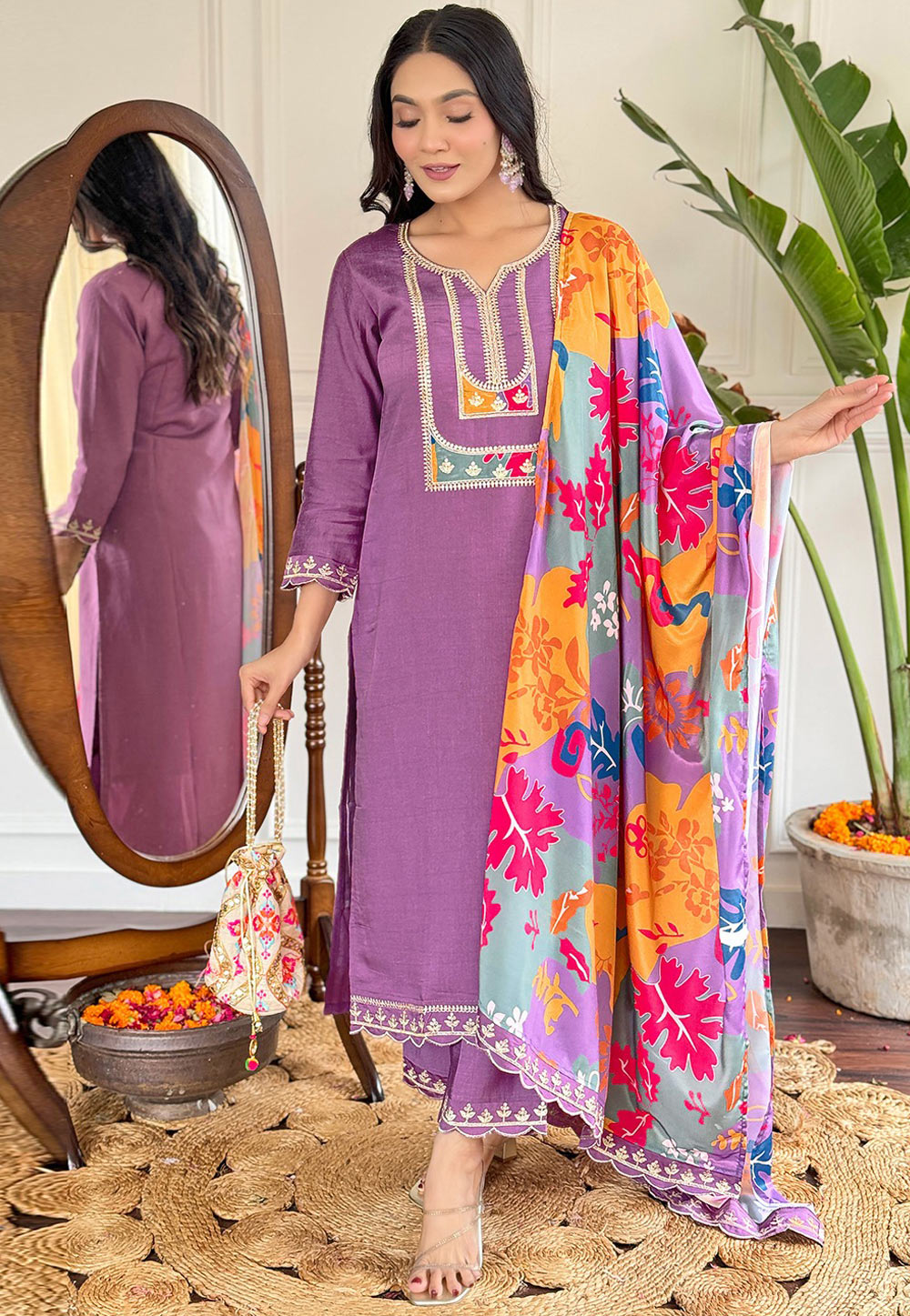 Purple Silk Readymade Pakistani Suit