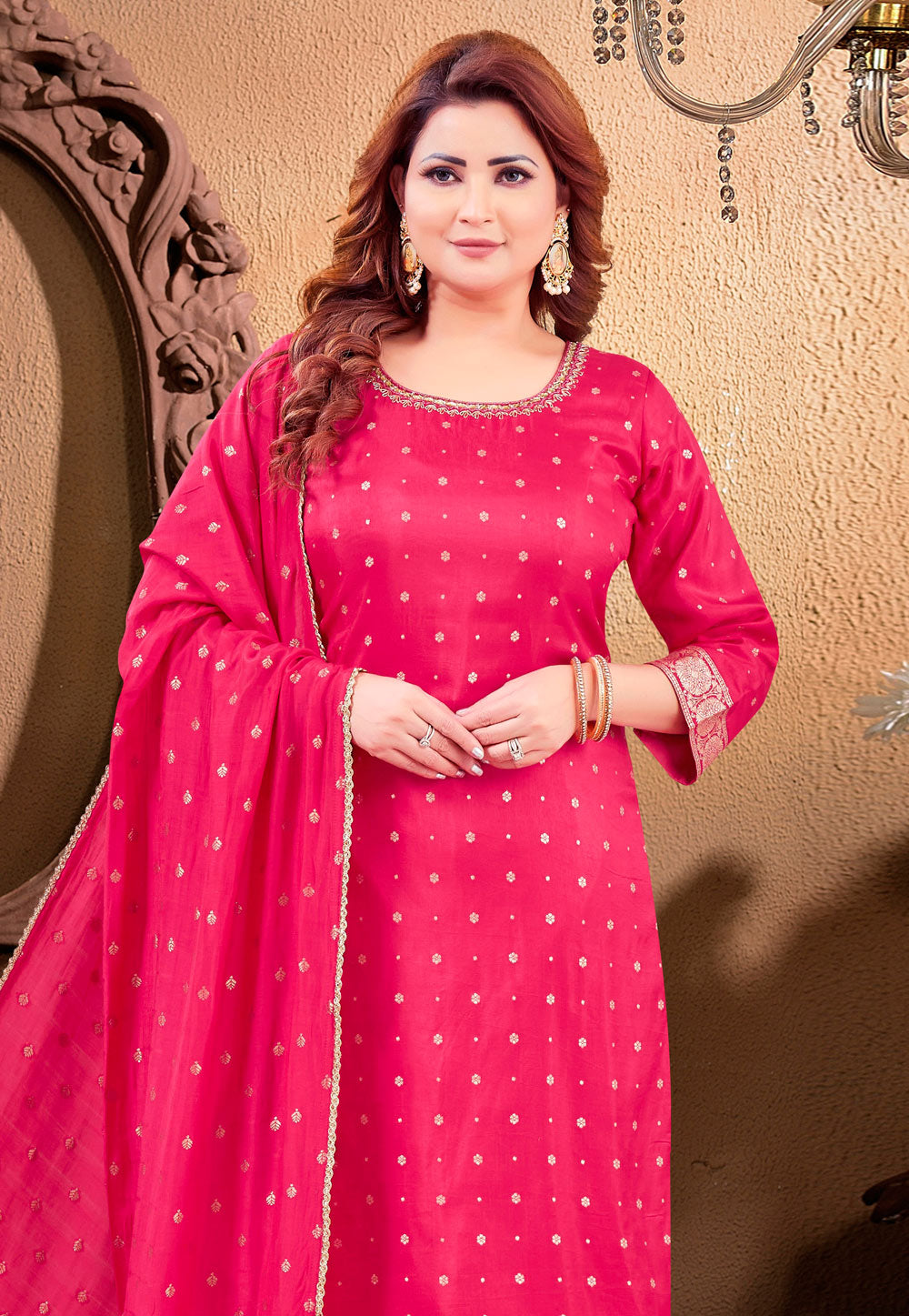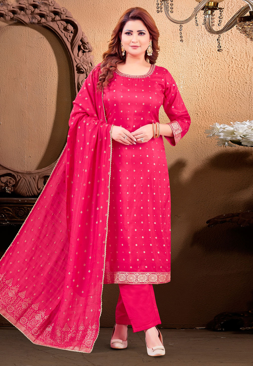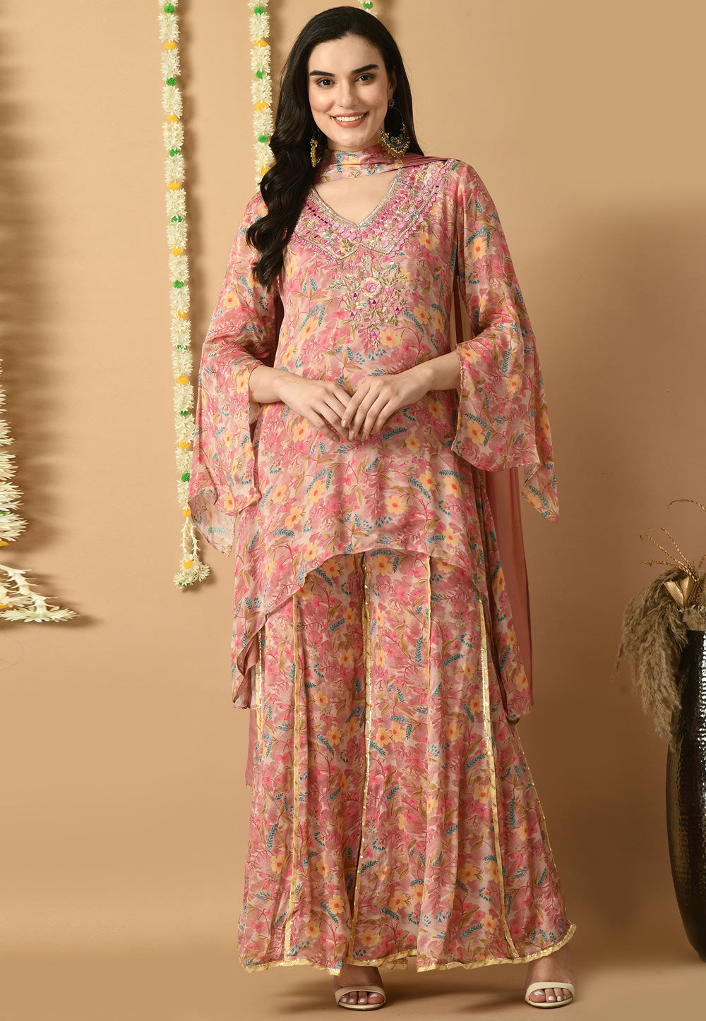 Pink Chinon Readymade Palazzo Suit