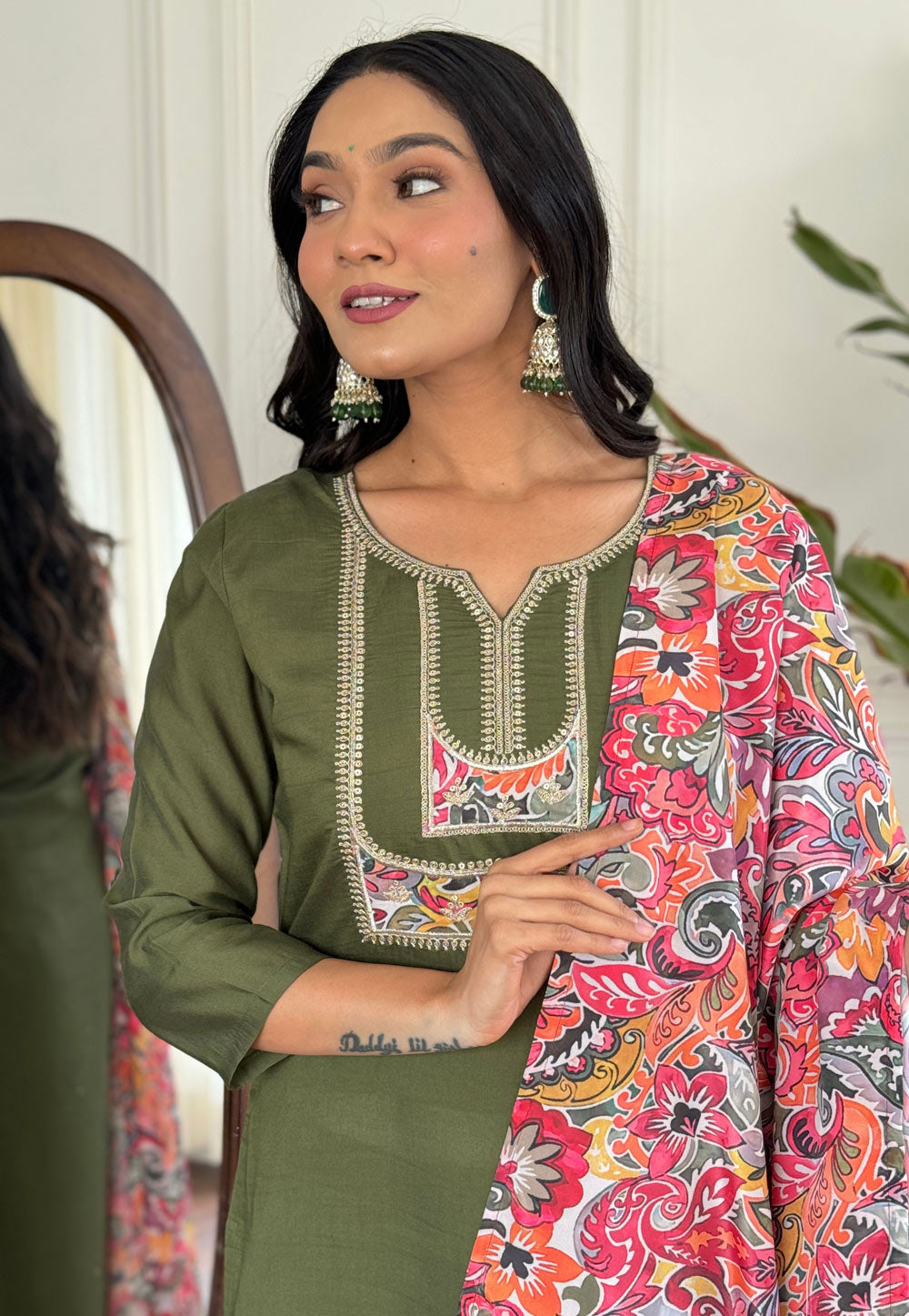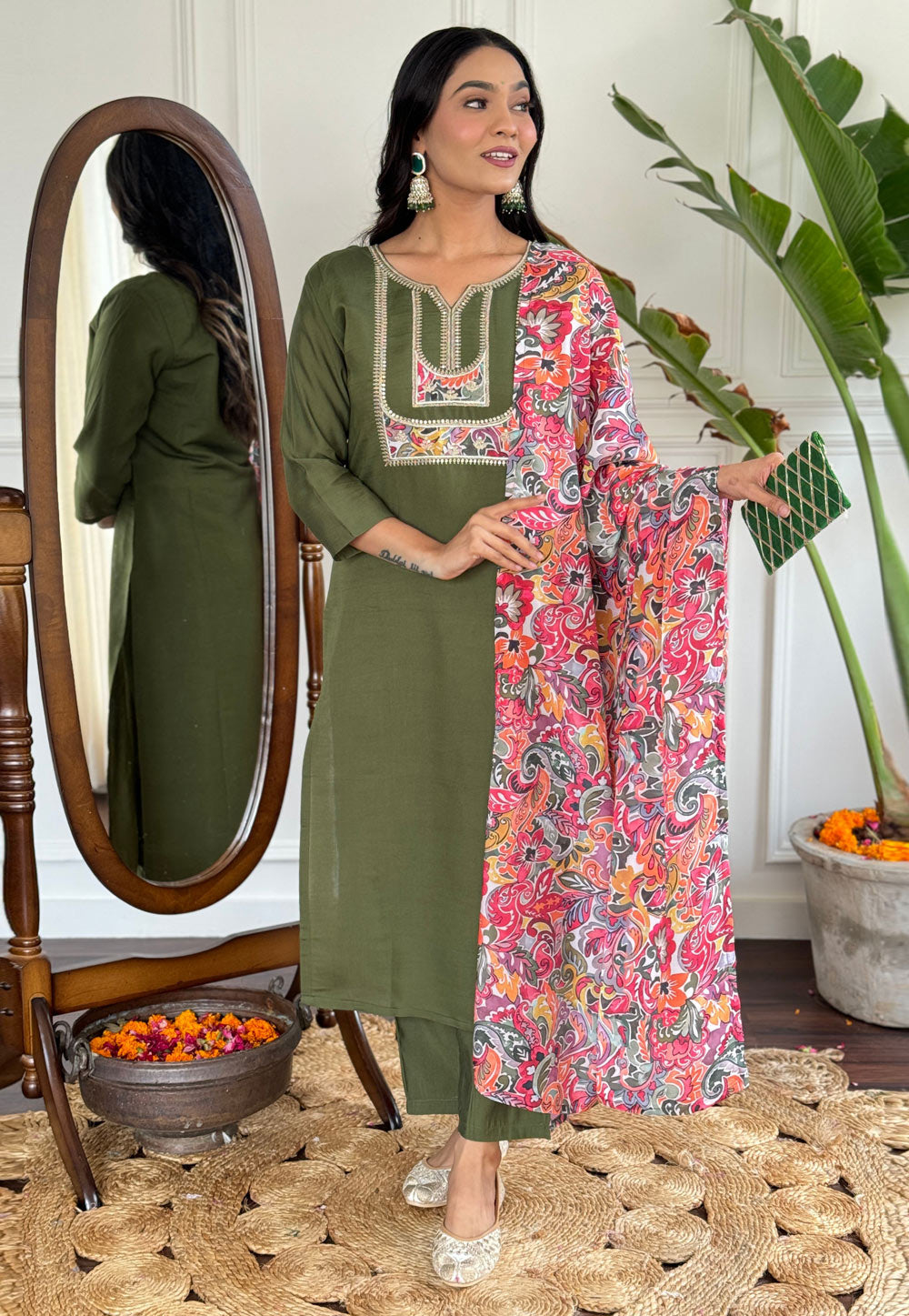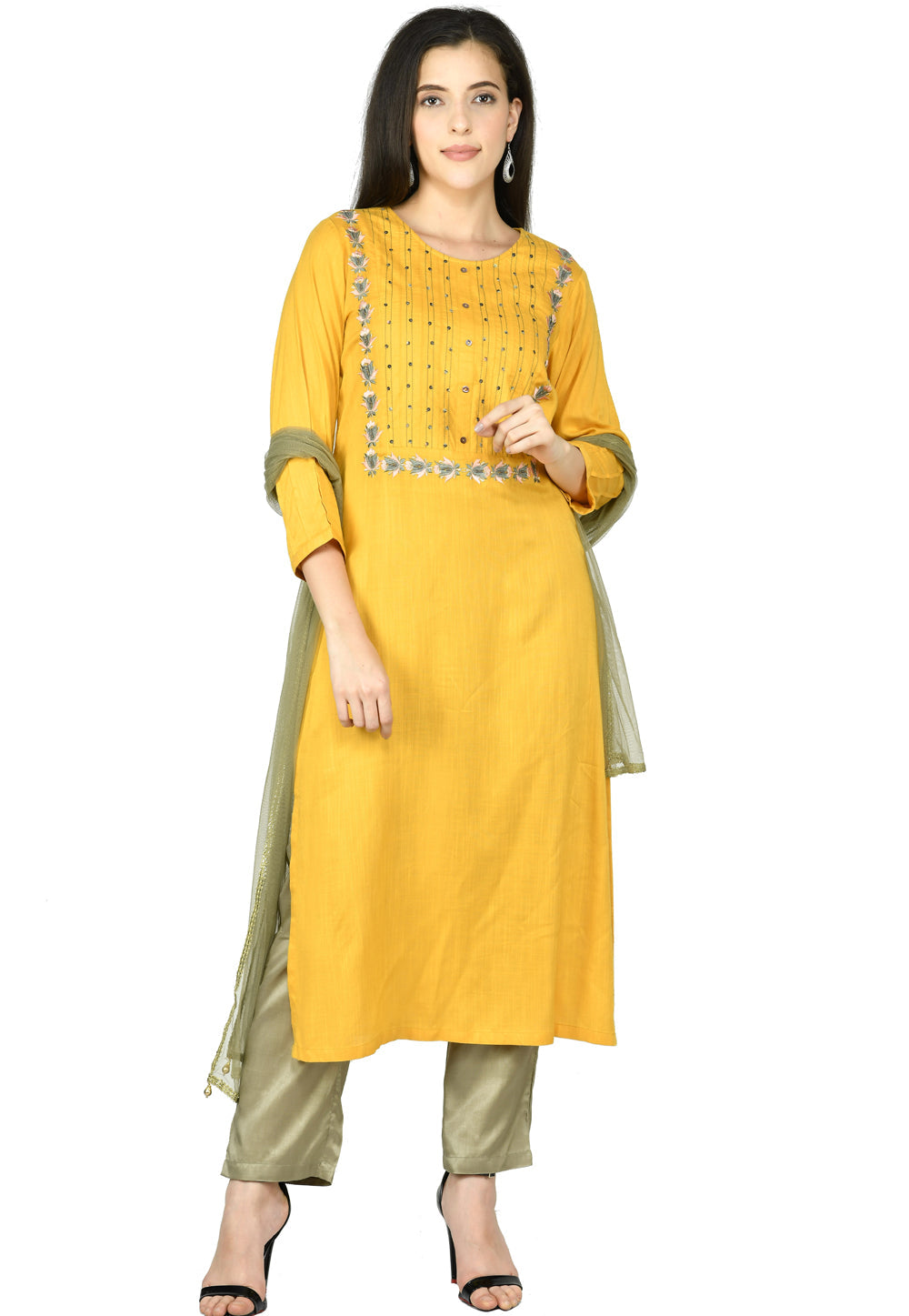 Mehndi Viscose Readymade Pant Style Suit