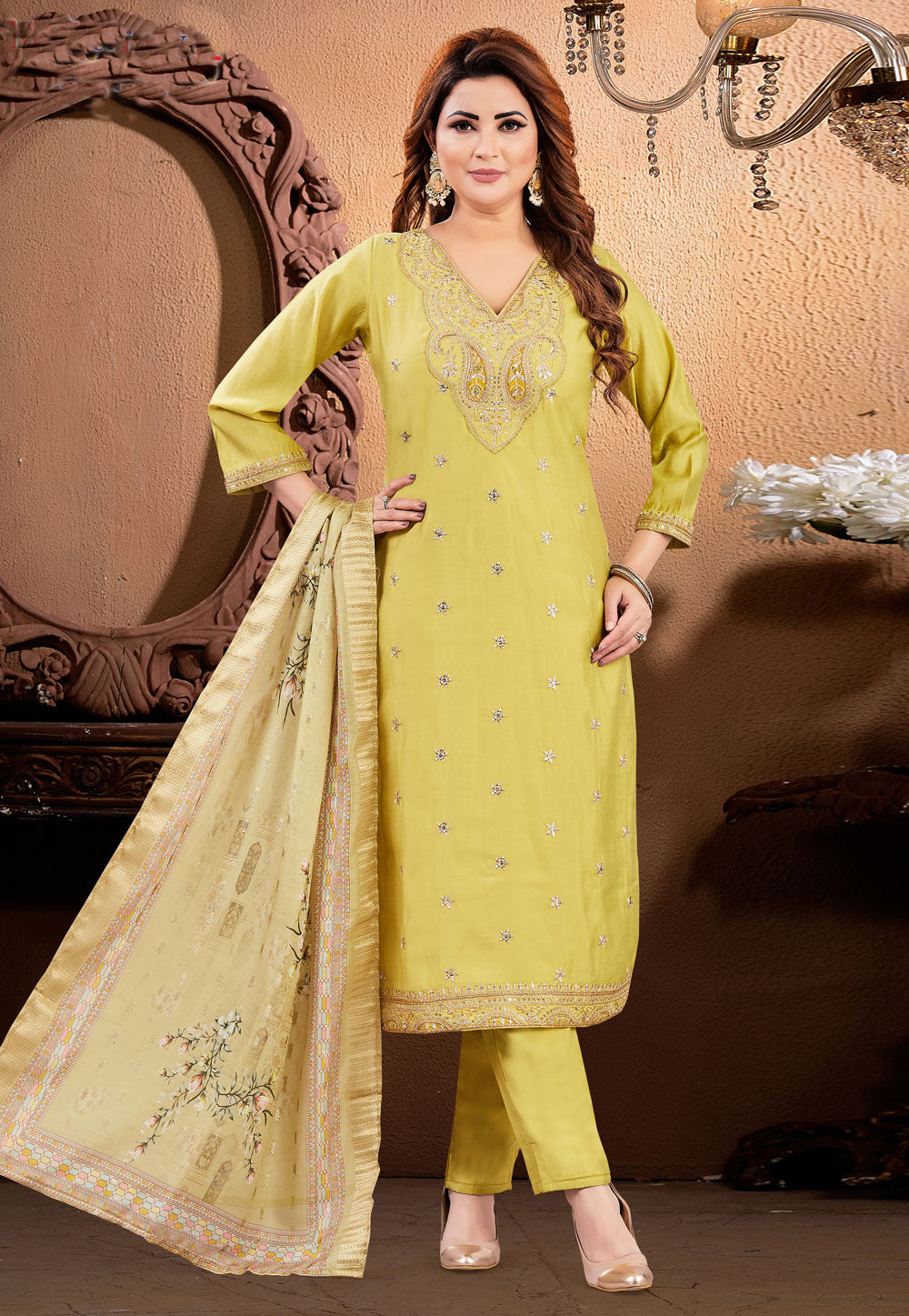 Mustard Silk Readymade Pant Style Suit