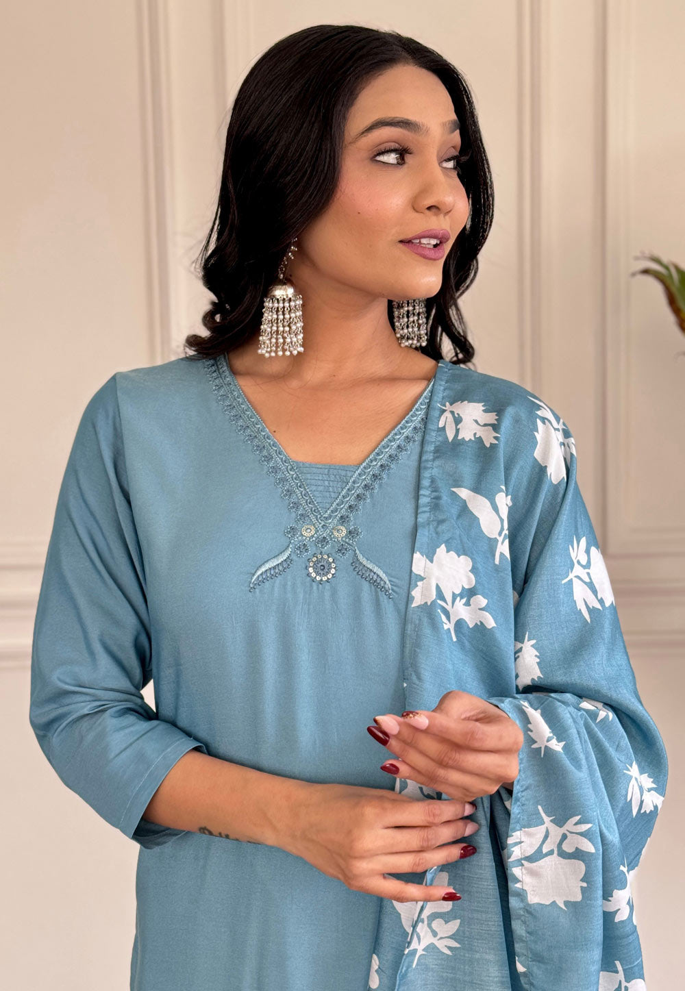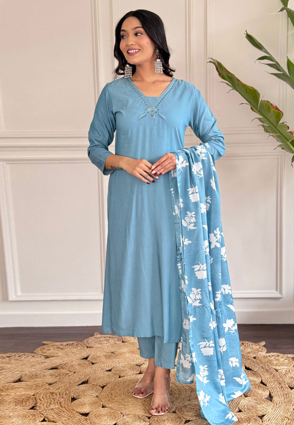 Sky Blue Viscose Readymade Pakistani Suit