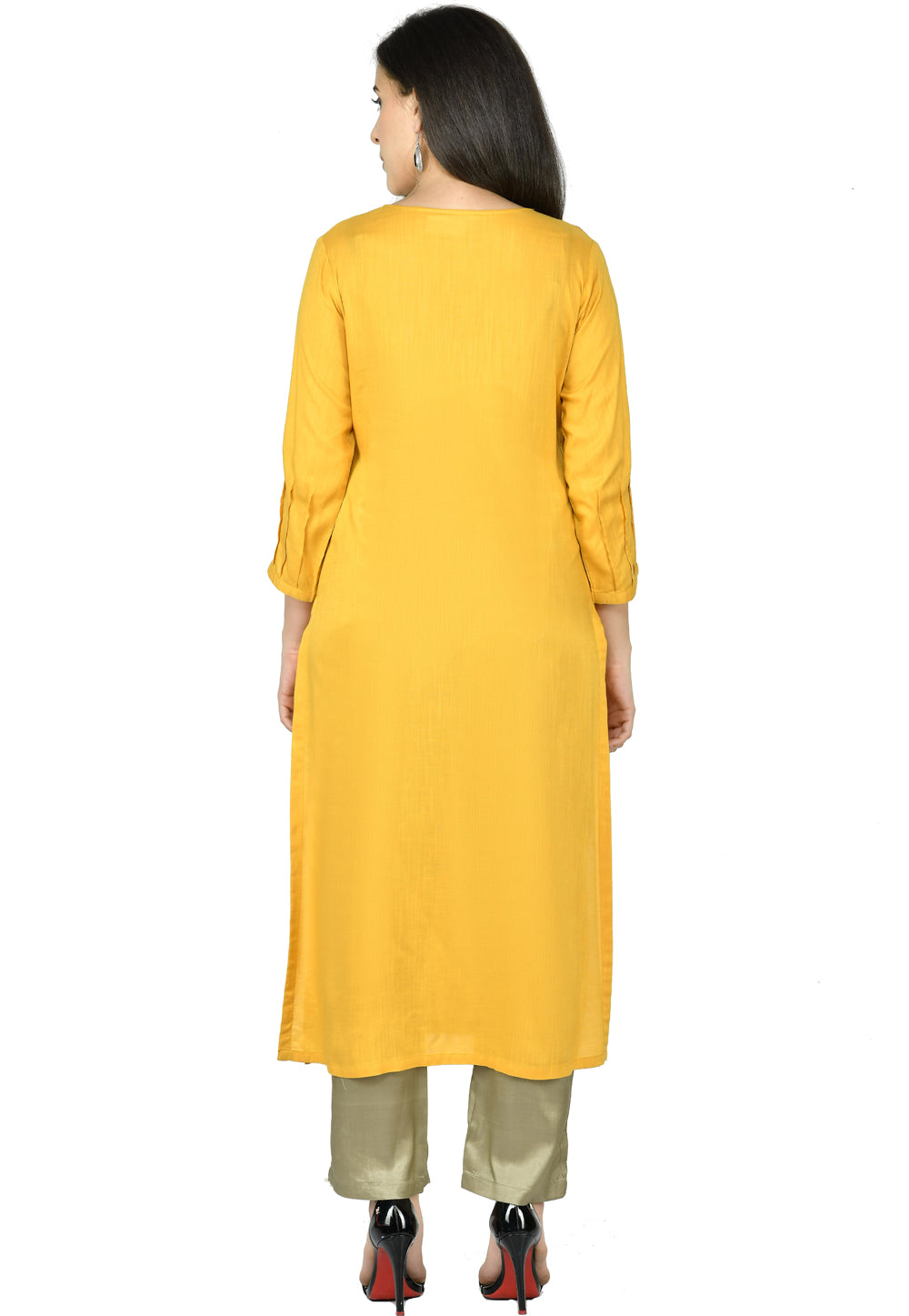 Yellow Cotton Rayon Readymade Pant Style Suit