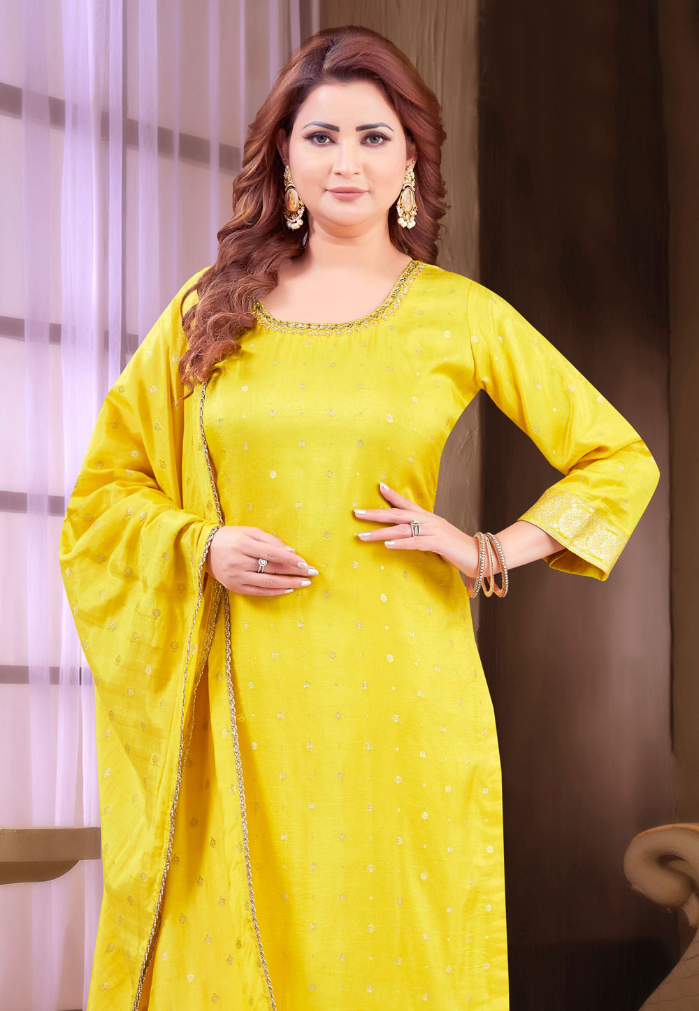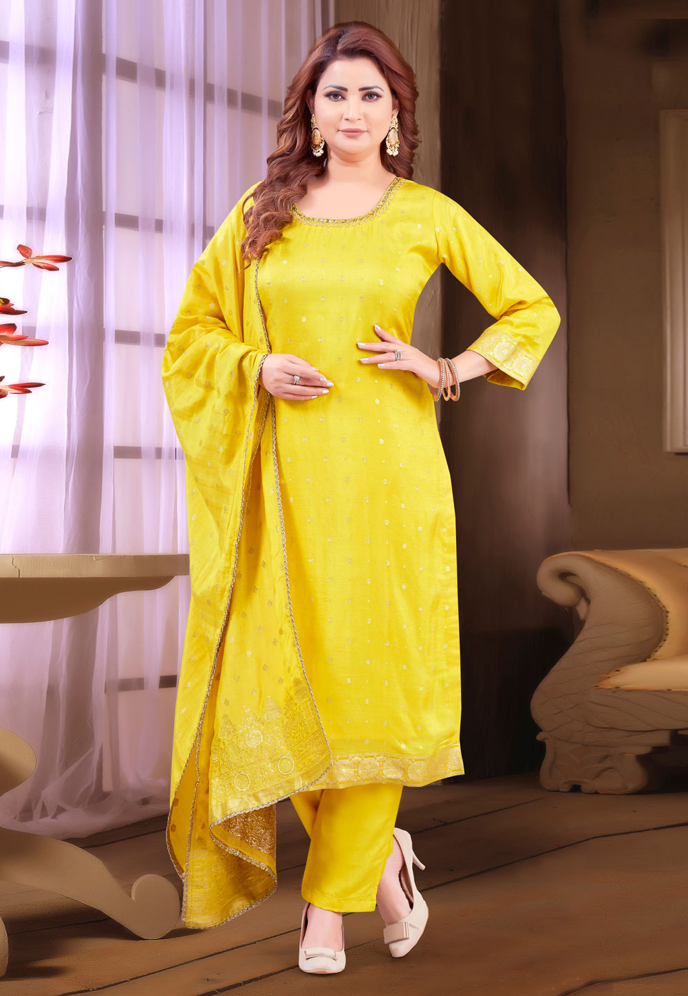 Yellow Silk Readymade Pakistani Suit