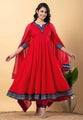 Red Rayon Readymade Anarkali Suit