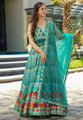 Turquoise Silk Readymade Long Anarkali Suit